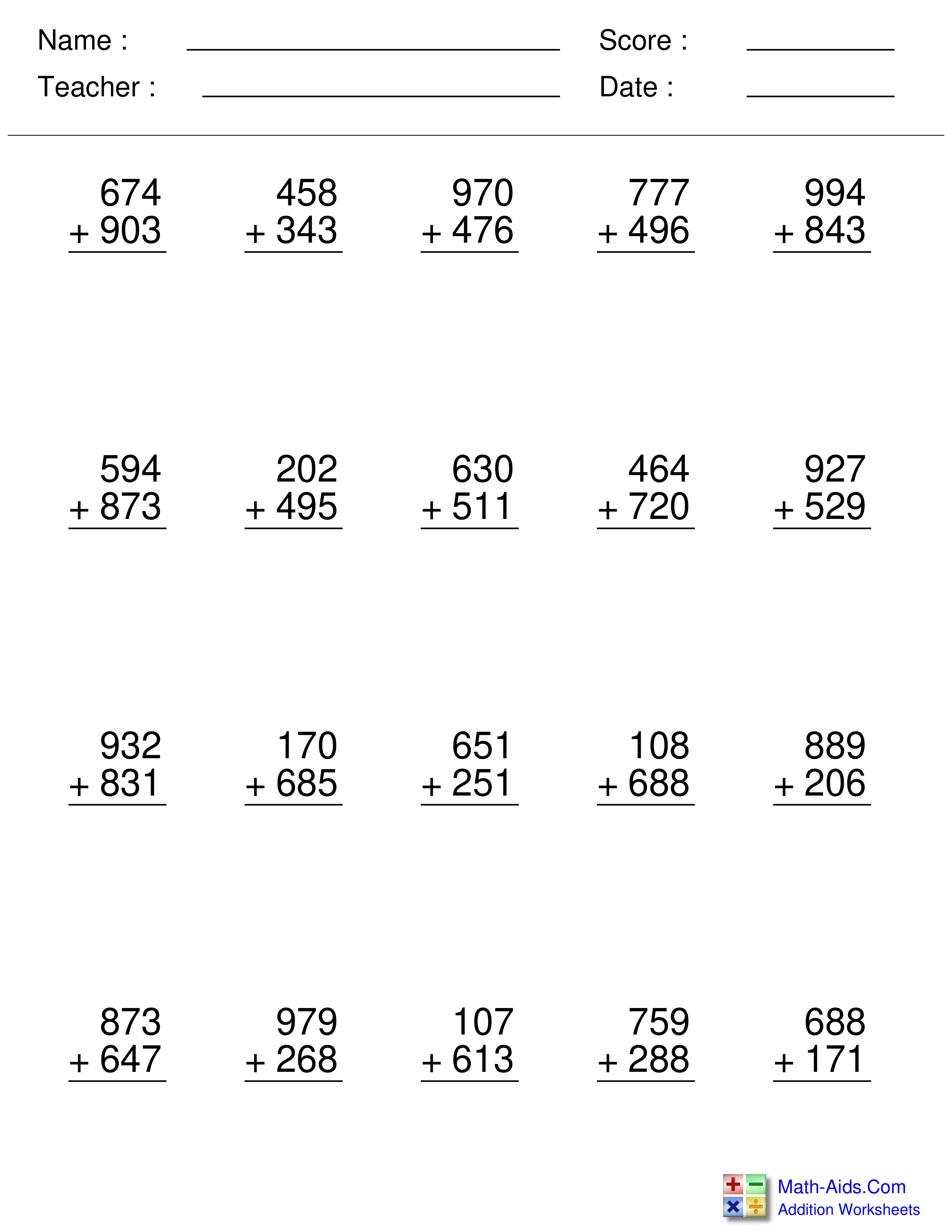 Add and input the sum using numbers only (NO COMMA).