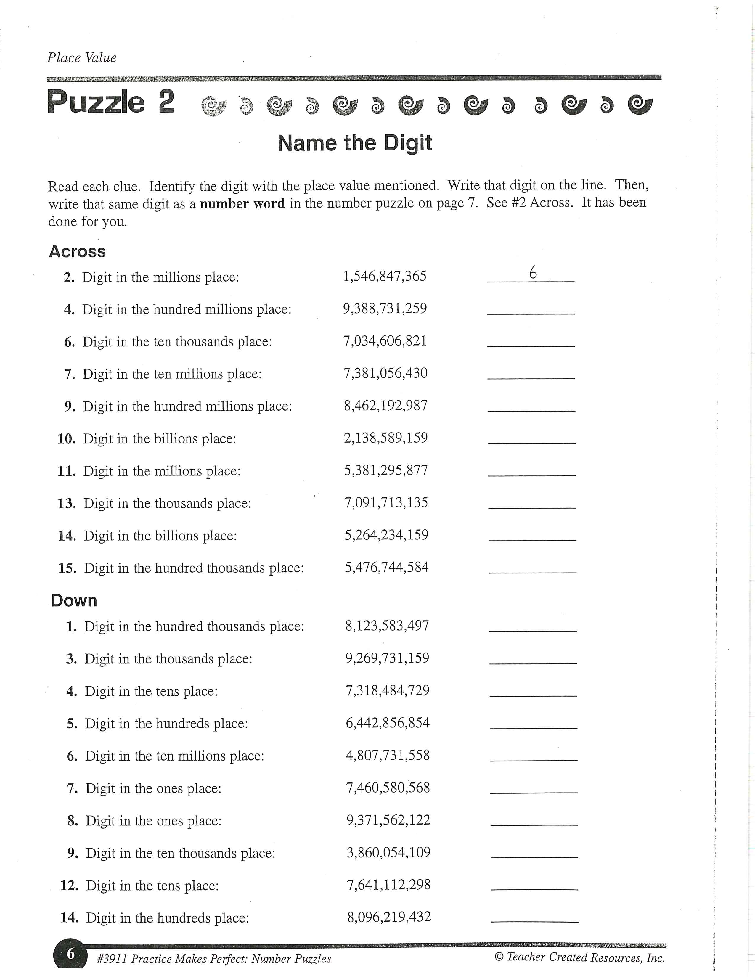 5.NBT.A.1 Understand the Place Value System. Students identify the digit in the place value listed