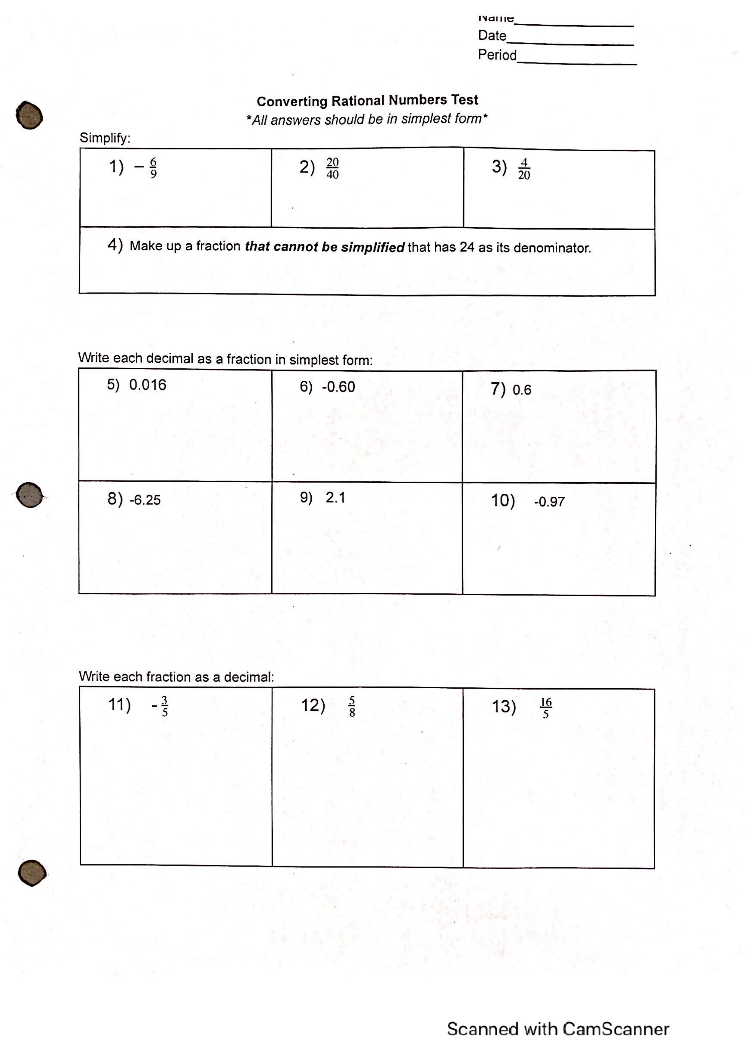 Converting Rational #'s Test