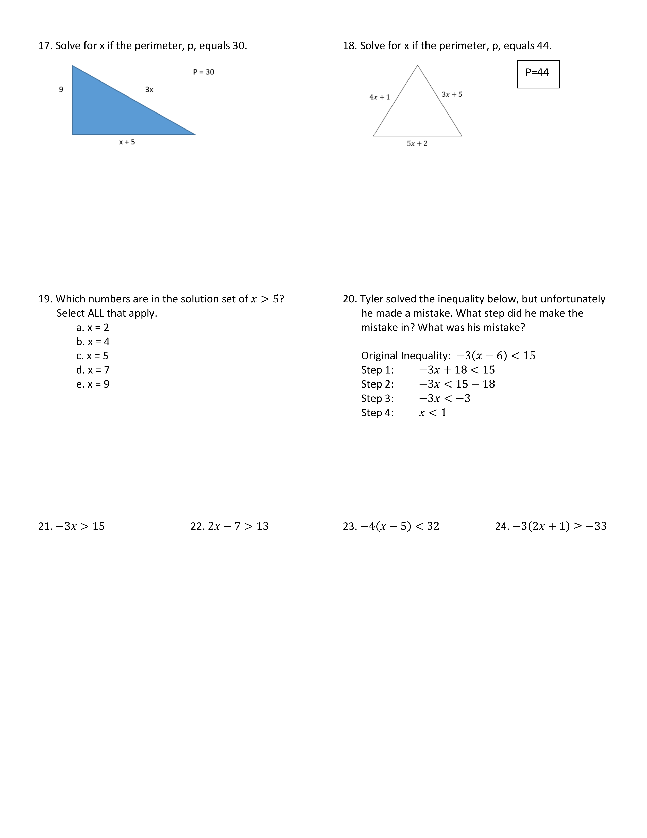 2020-2021 Math Essentials Test #1 Study Guide - Equations and Inequalities in One Variable