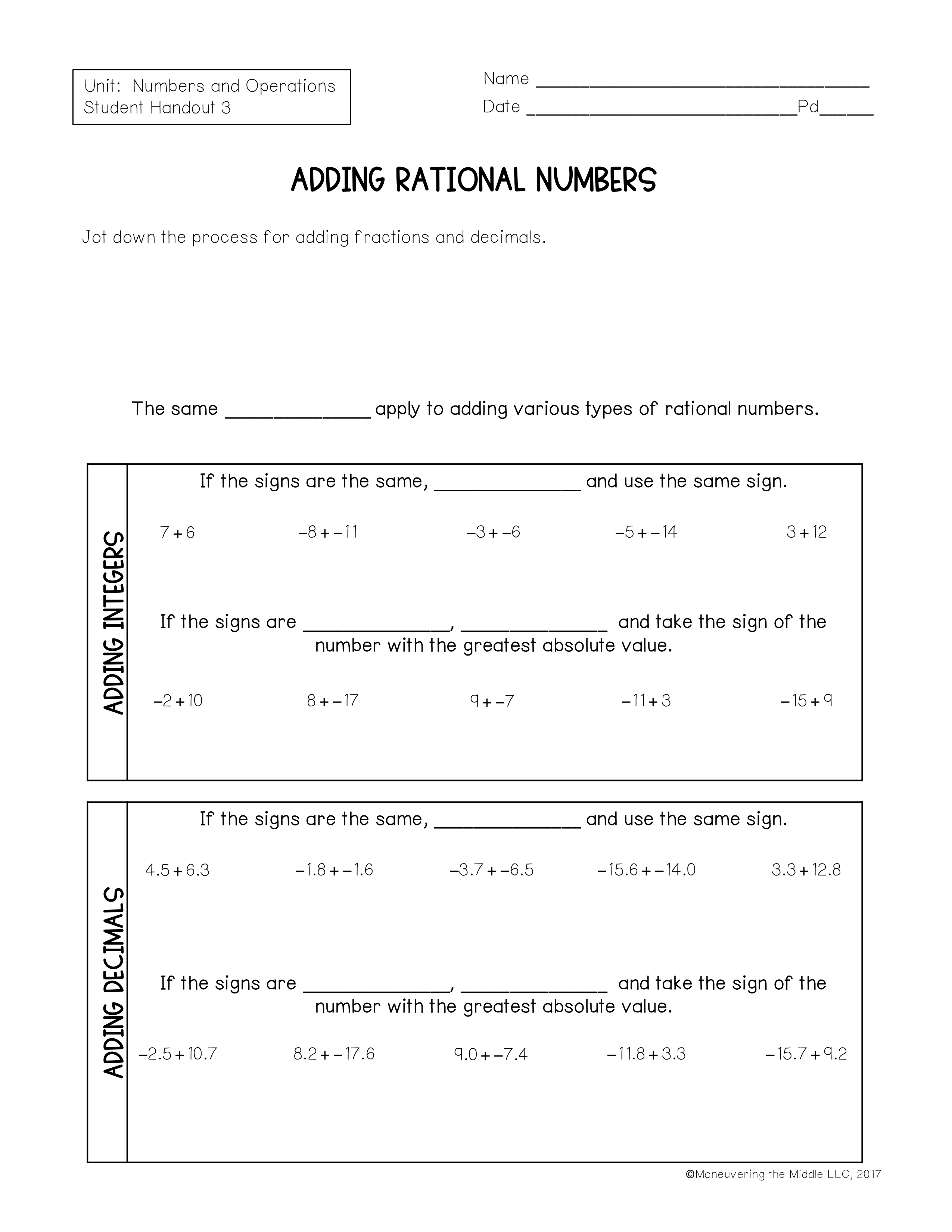 7th grade U1L3 Adding rational numbers