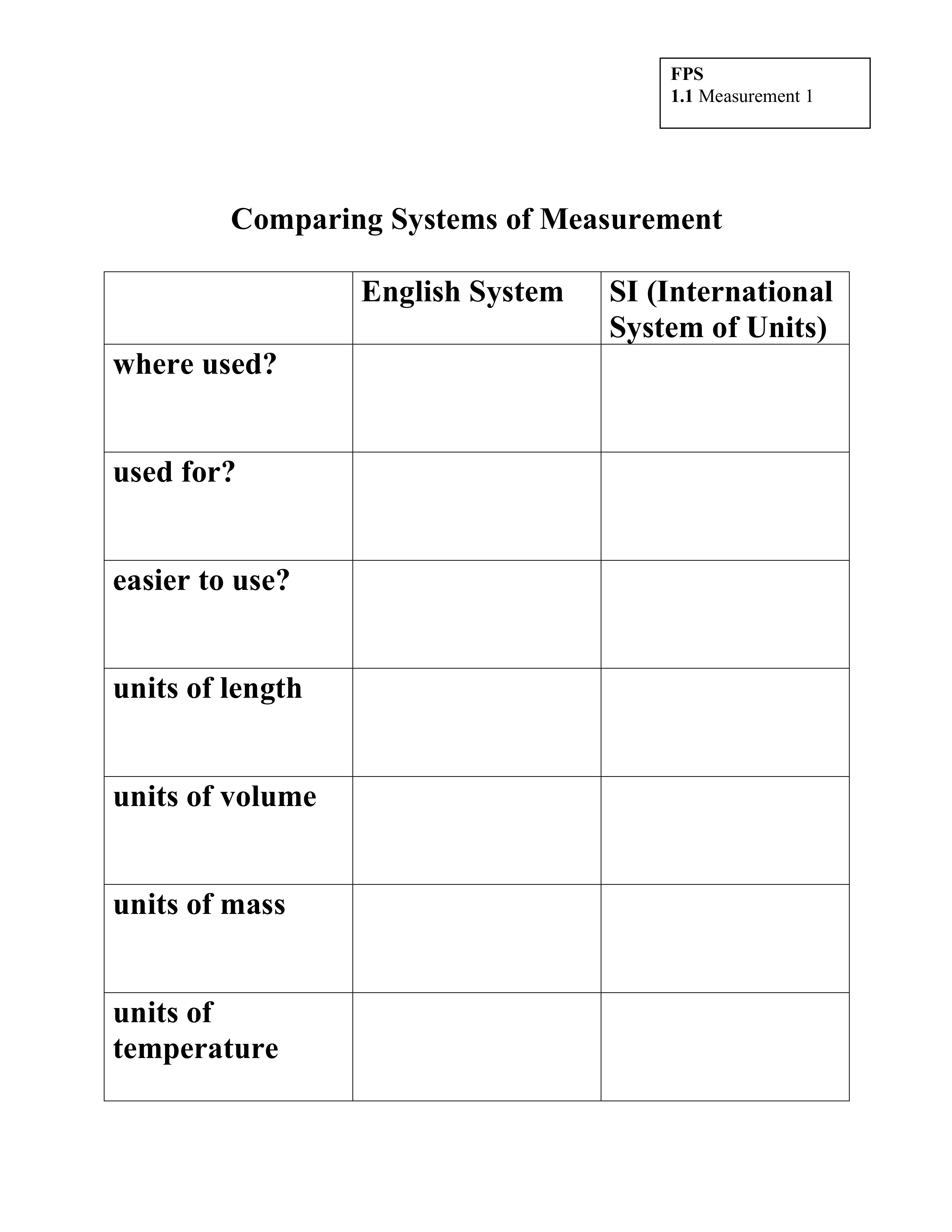 Comparing English and Metric System.