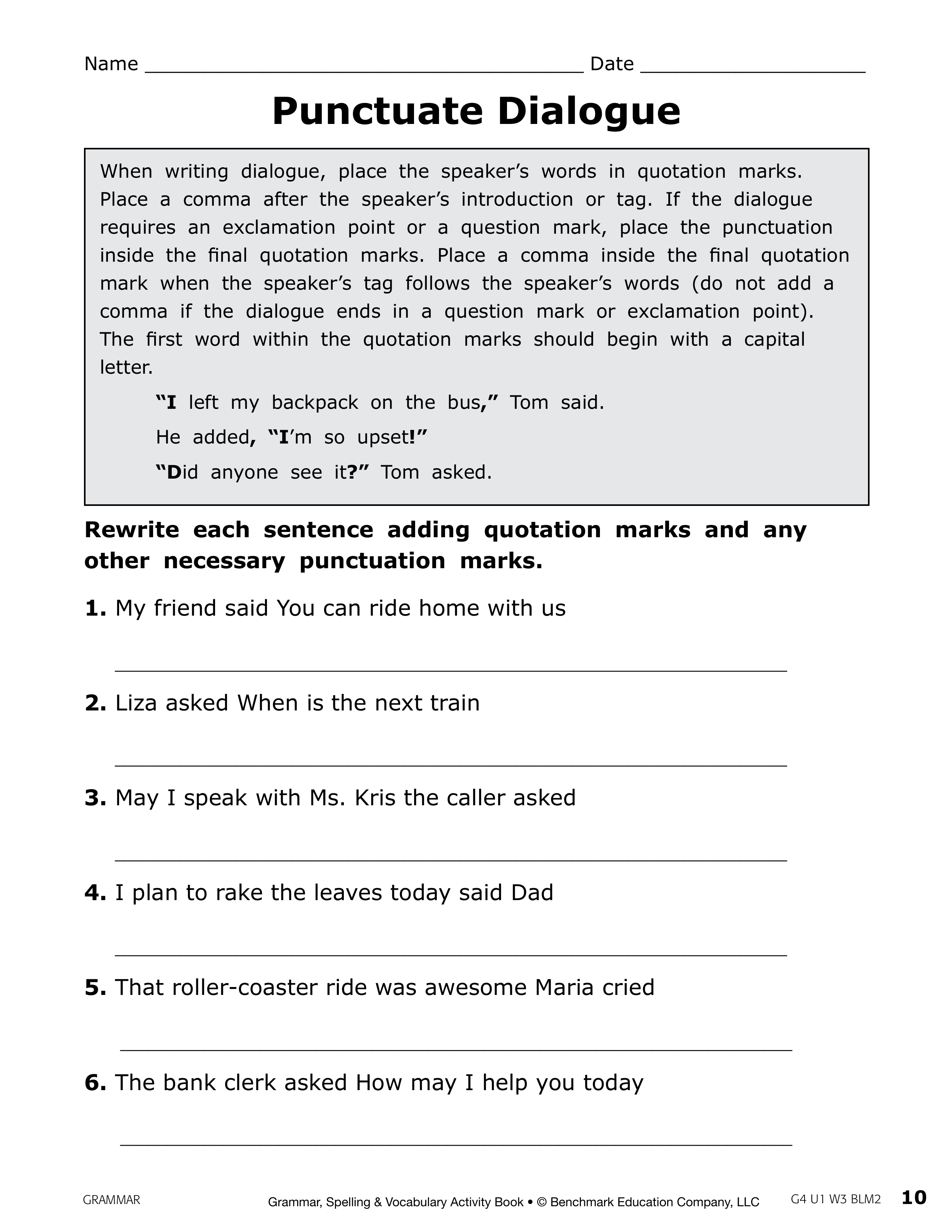BM U1W3 Punctuation Dialogue