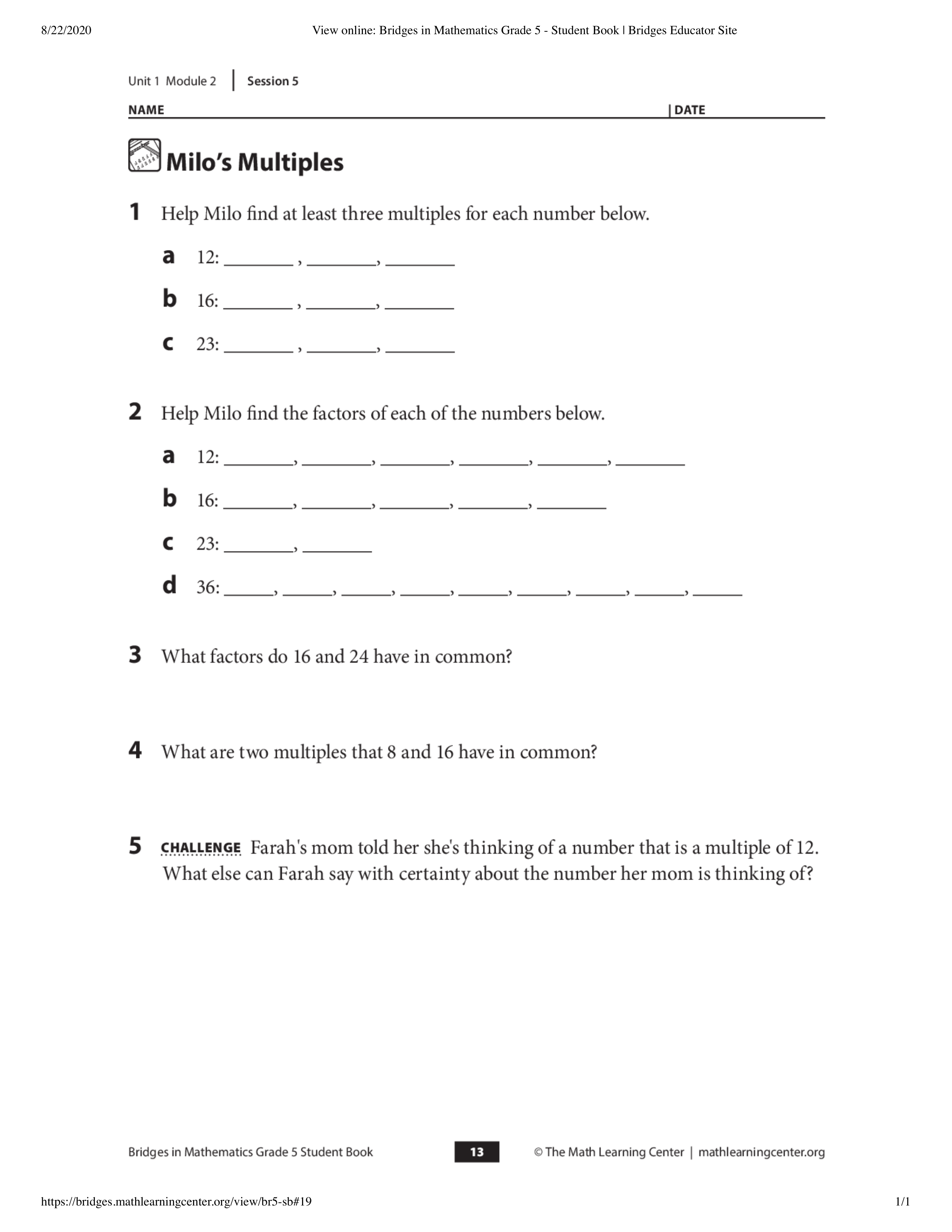What are two multiples do 16 and 24 have in commom. Seperate the numbers with a comma and space.