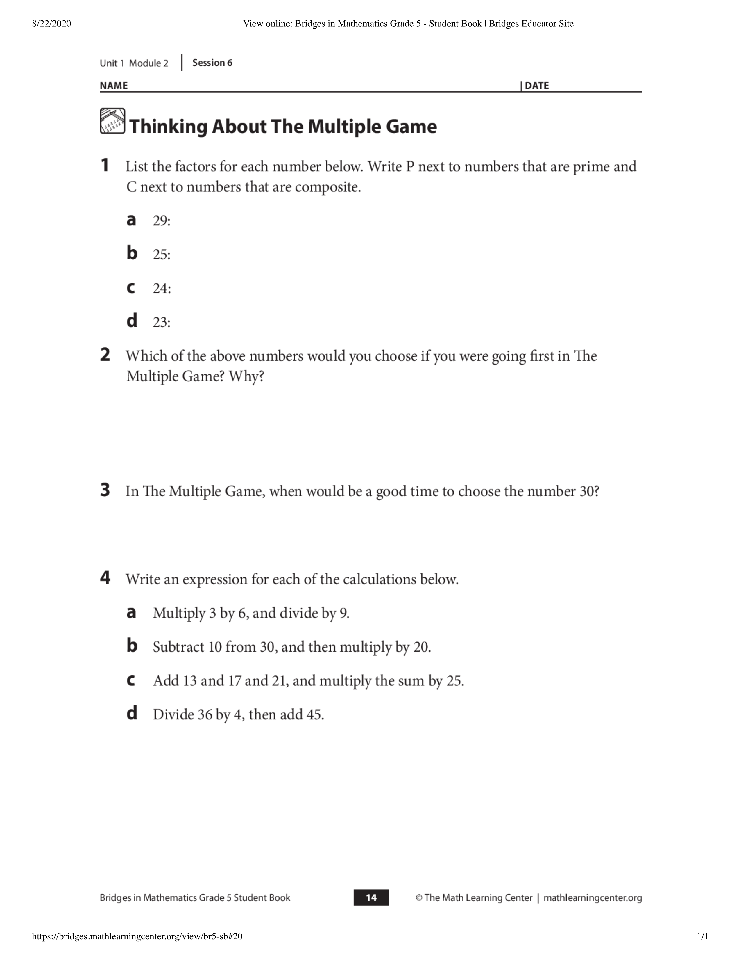Which number would you post first in the factor game? Why?