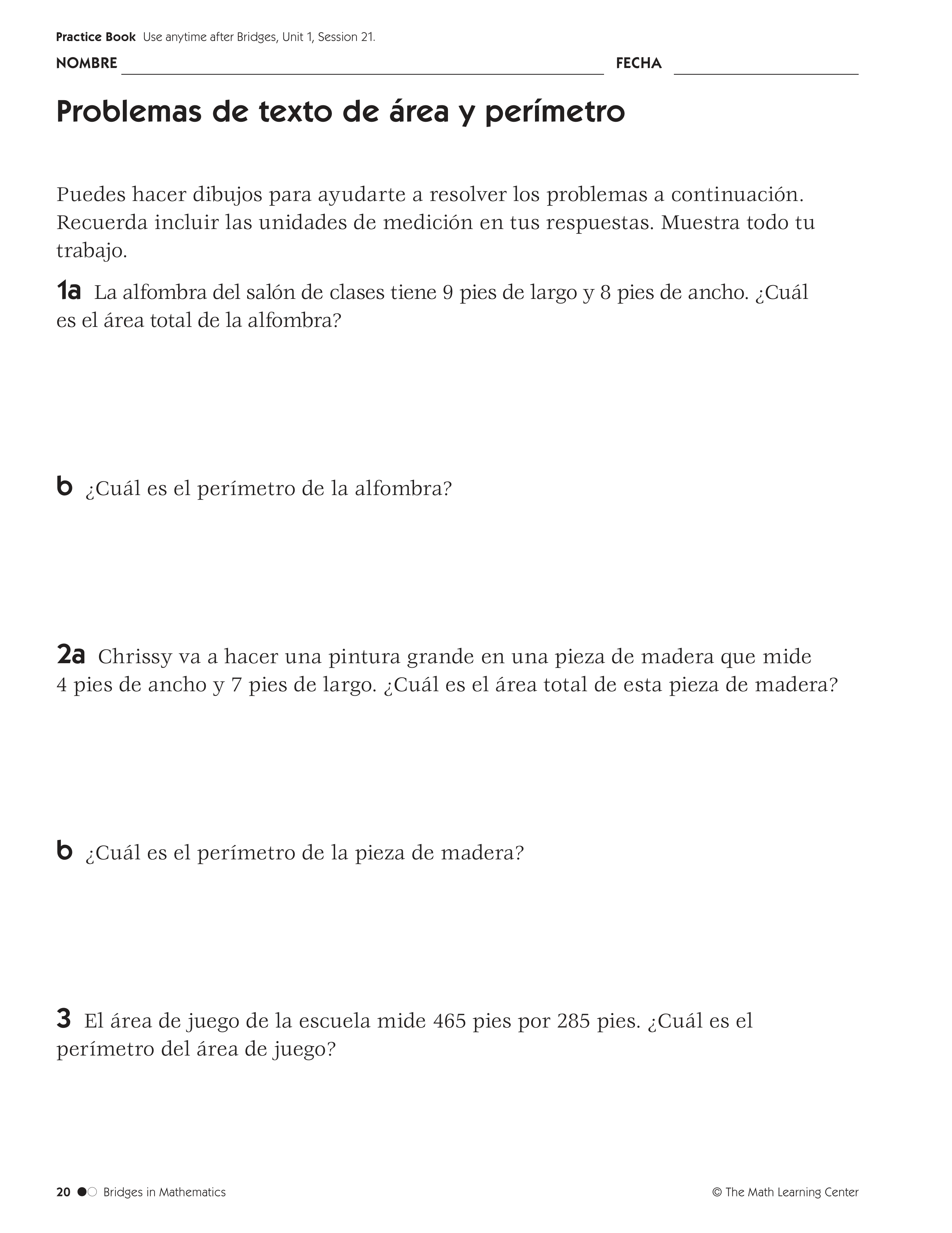 Problemas de texto con área y perímetro