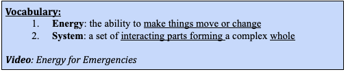 Place each of the following items below in either the ‘things that have energy box’ or in the ‘Things that DO NOT have energy box’.