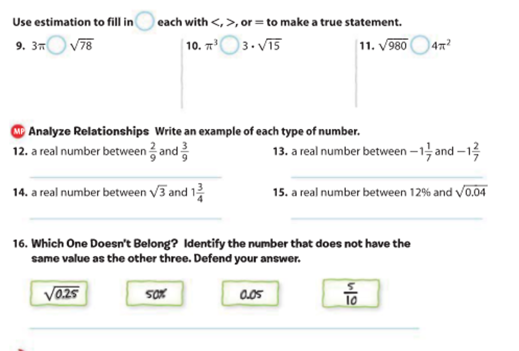 Which shows the numbers in order from least to greatest? In your workbook graph the numbers on the number line.
