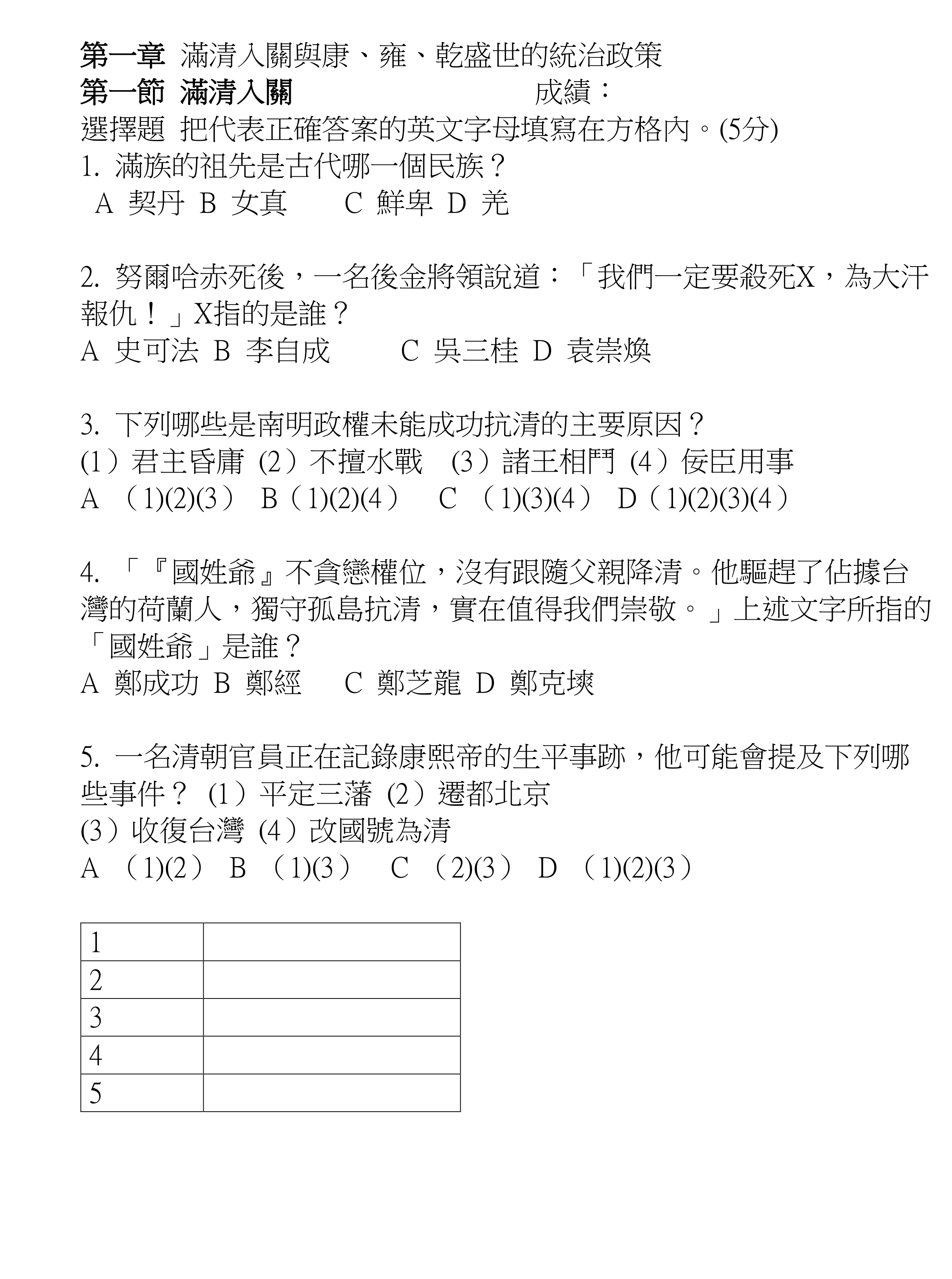 「『國姓爺』不貪戀權位,沒有跟隨父親降清。他驅趕了佔據台灣的荷蘭人,獨守孤島抗清,實在值得我們崇敬。」上述文字所指的「國姓爺」是誰?