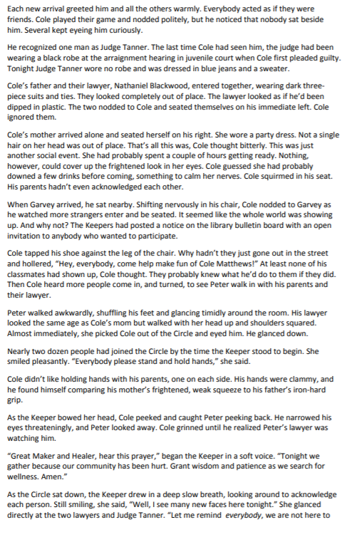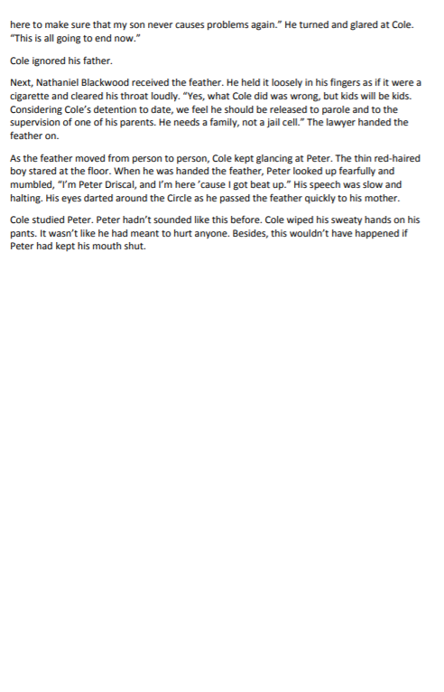 Why is it significant that Cole gives a threatening look to Peter at the beginning of the Circle?