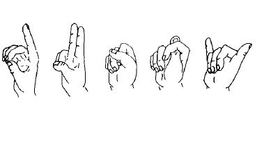 Type in what the handshapes spell; then unscramble the letters to form a word that has to do with education and type the second word on the second box.