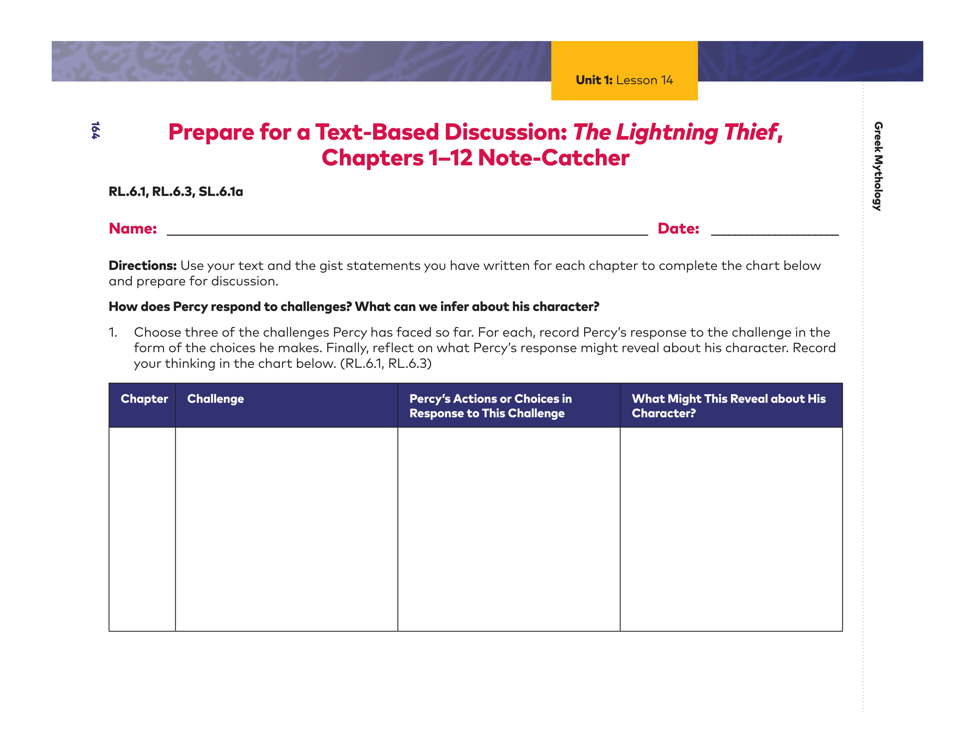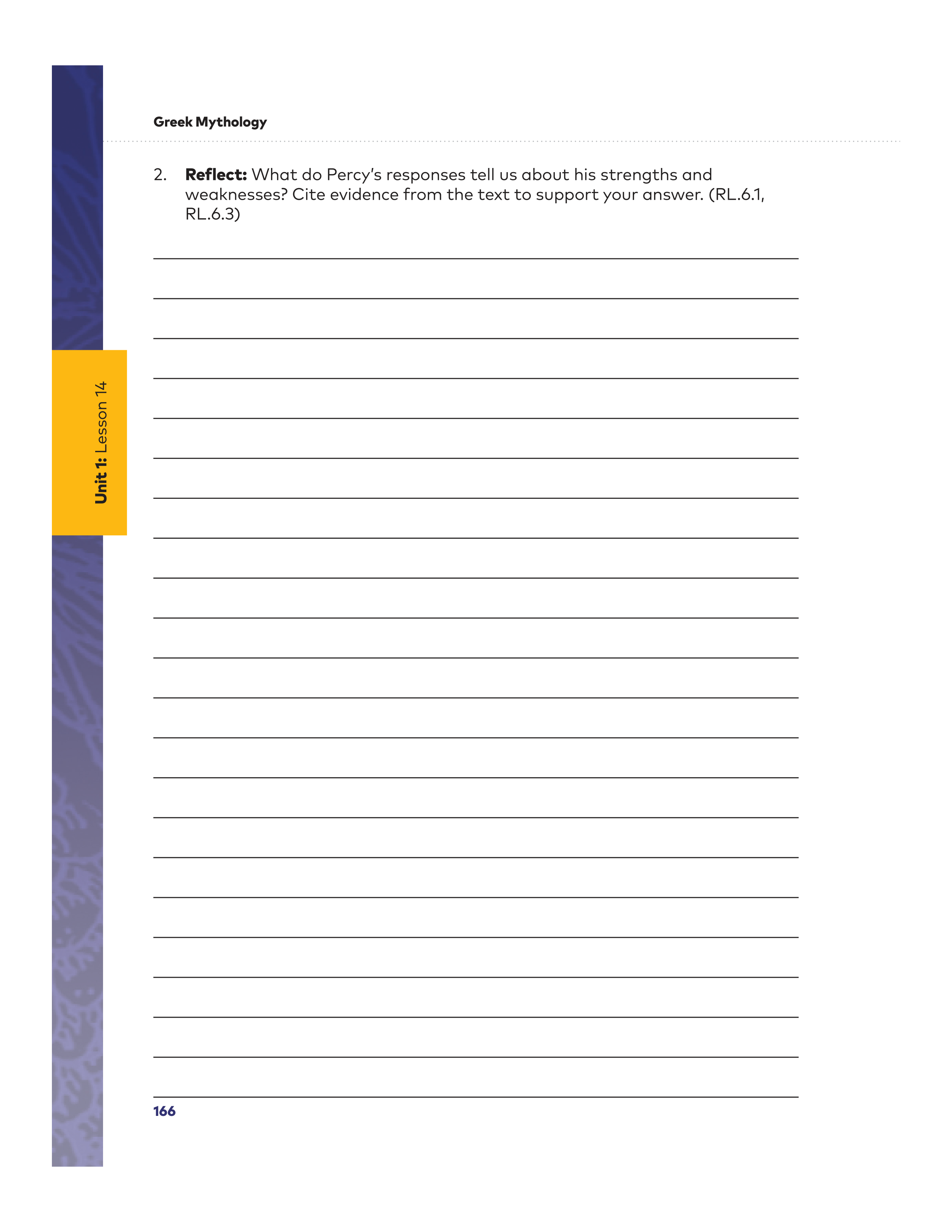 What do Percy’s responses tell us about his strengths and weaknesses? Cite evidence from the text to support your answer. (Give me a QUOTE!)