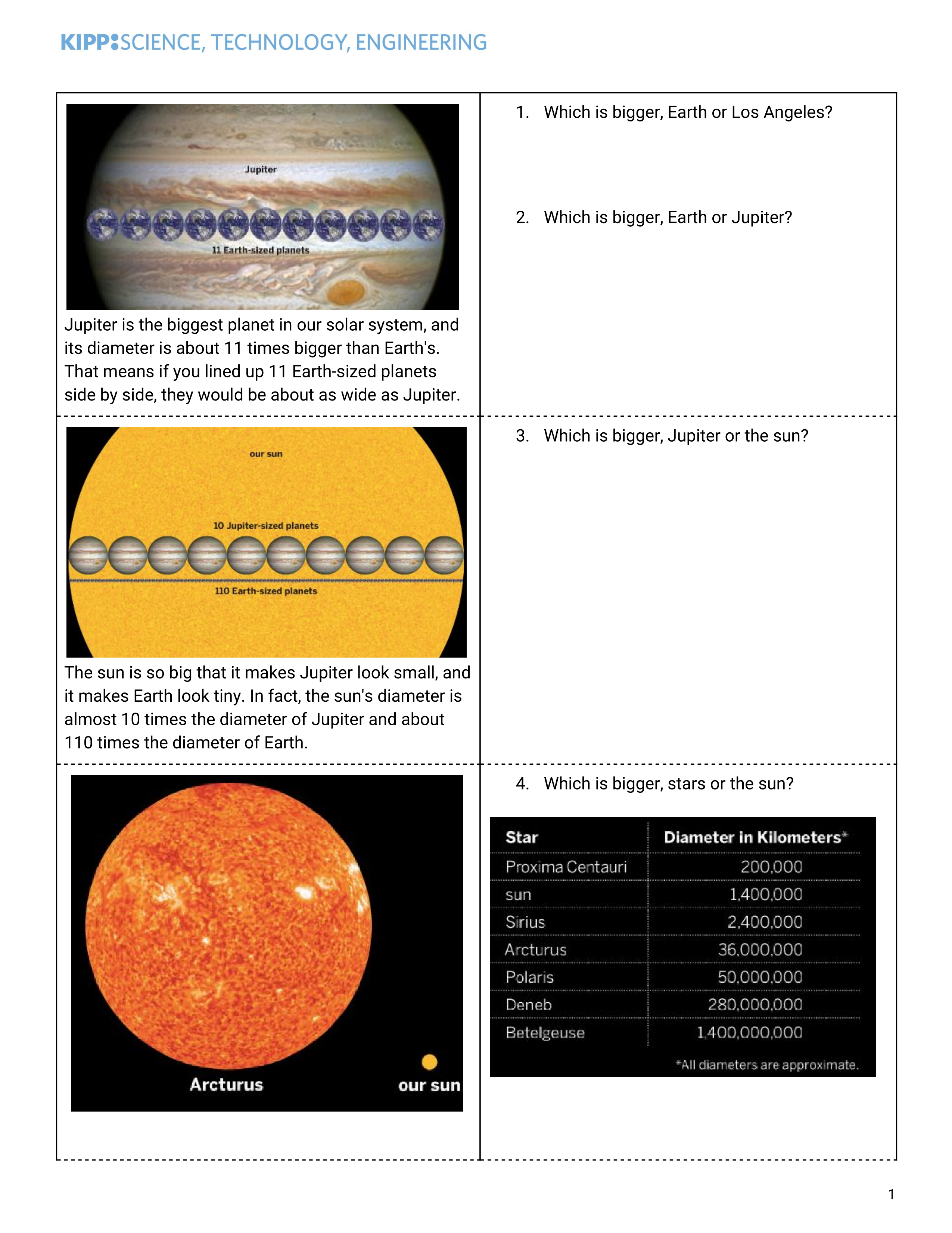 Put these five objects in order from what you THINK is the smallest to what you THINK is the largest - a star, the Earth, the sun, your city, Jupiter.