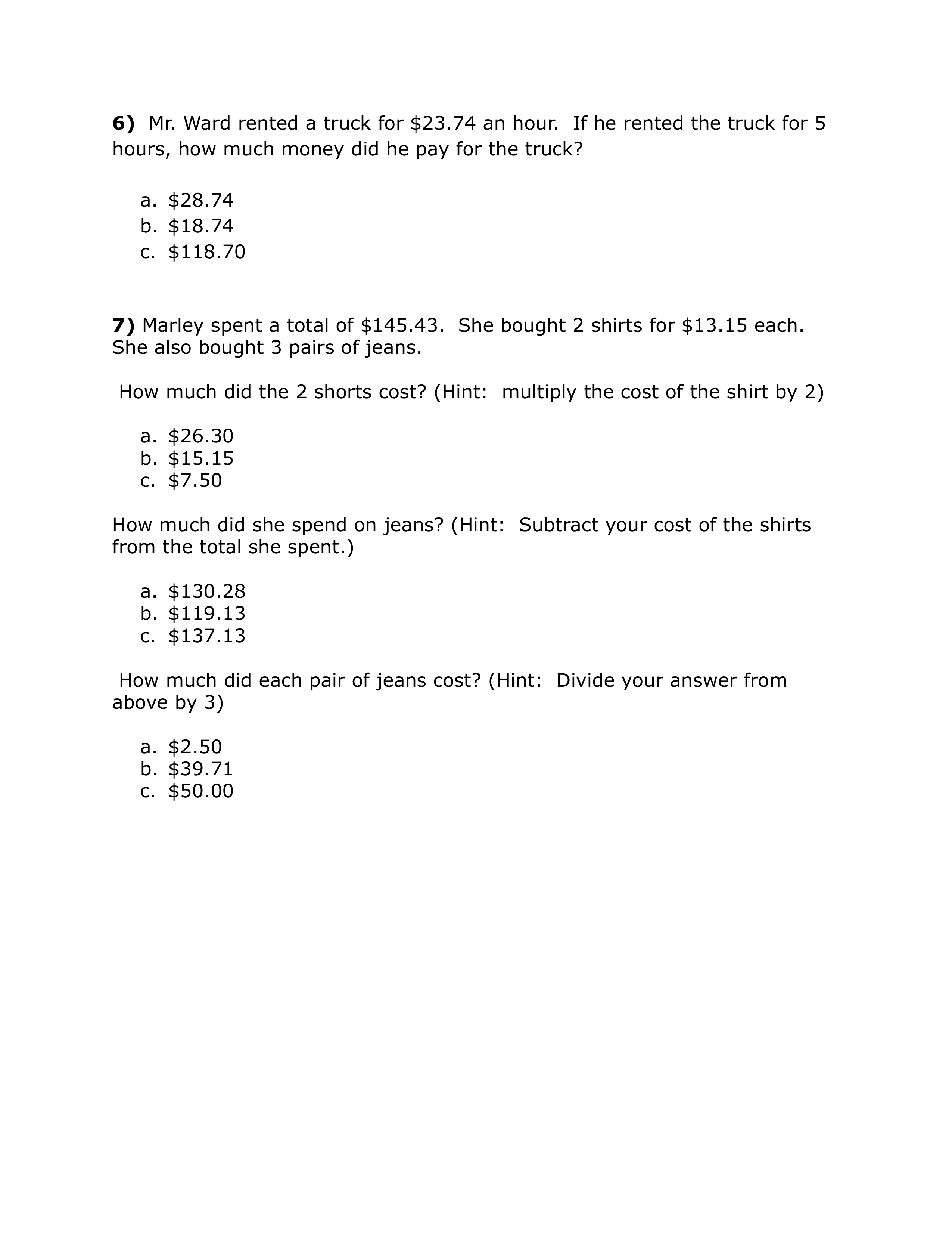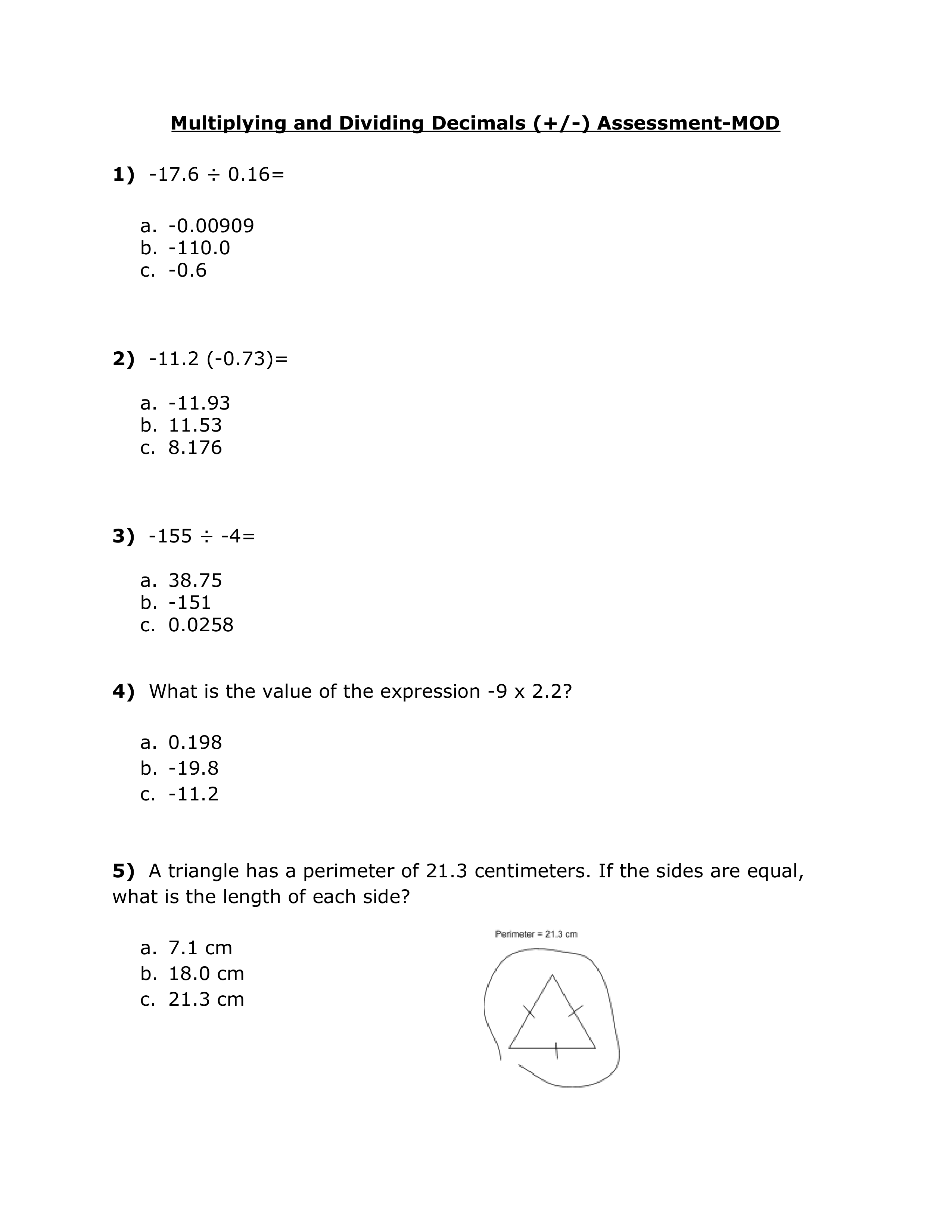 Multiplying and Dividing Decimals (+/-) Assessment-MOD