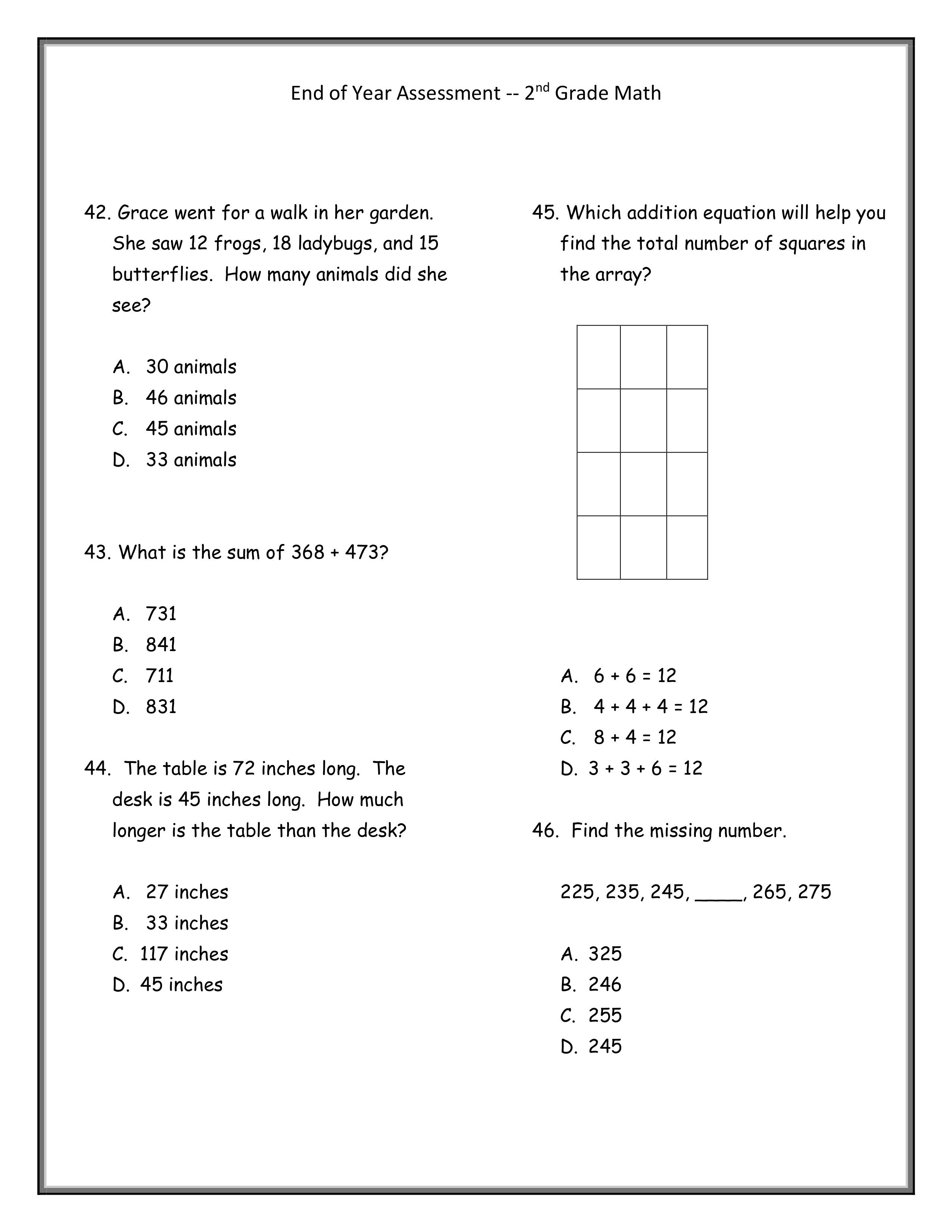 1. Find the missing number.225, 235, 245, ____, 265, 275