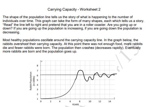 How many years did it take for the rabbits to reach their carrying capacity? Explain how you decide on this.