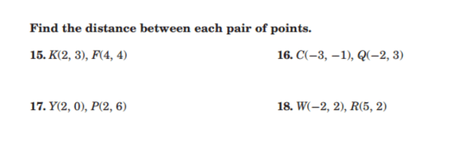 Find the distance between each pair of points. Round to the tenths place if necessary.
