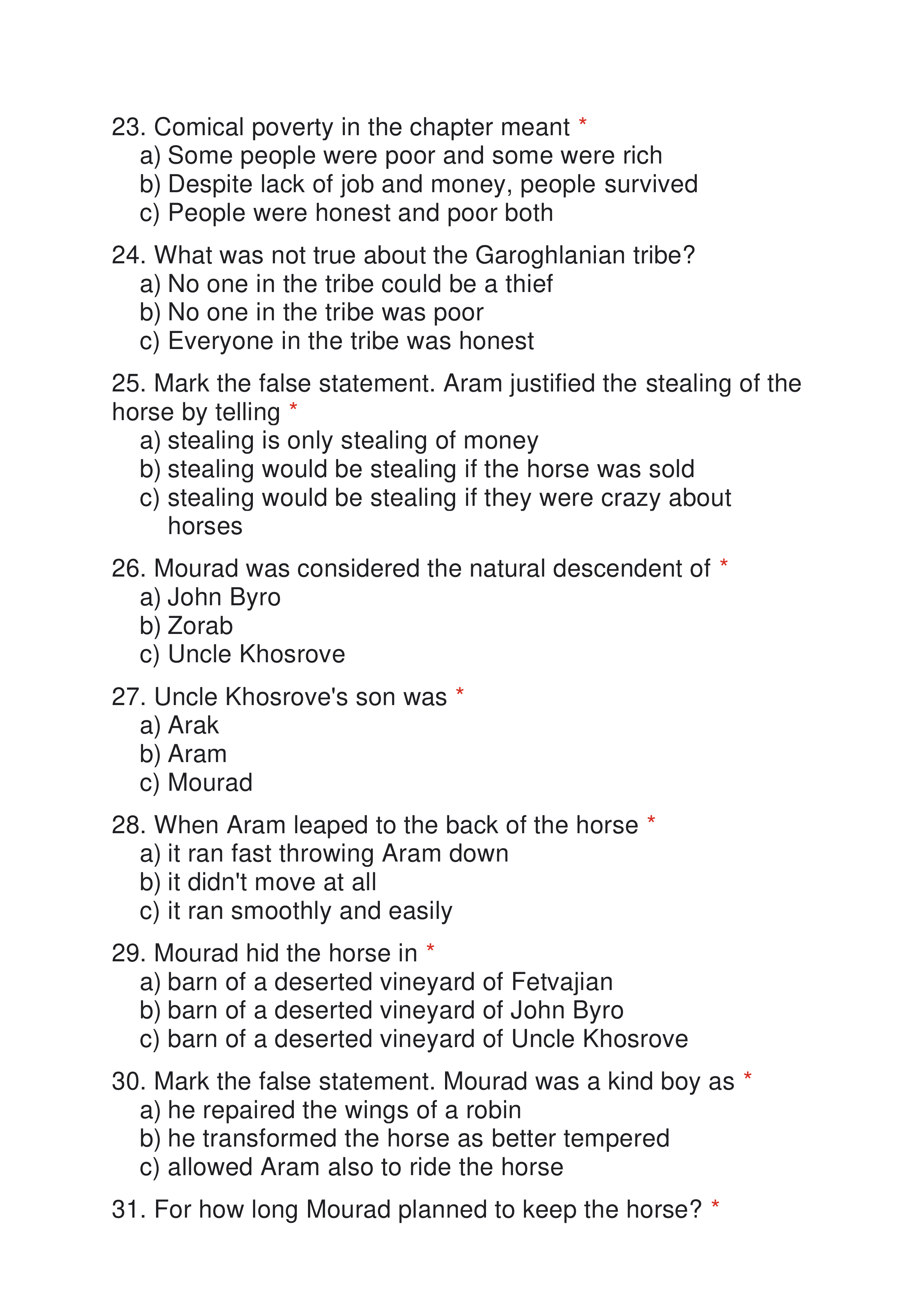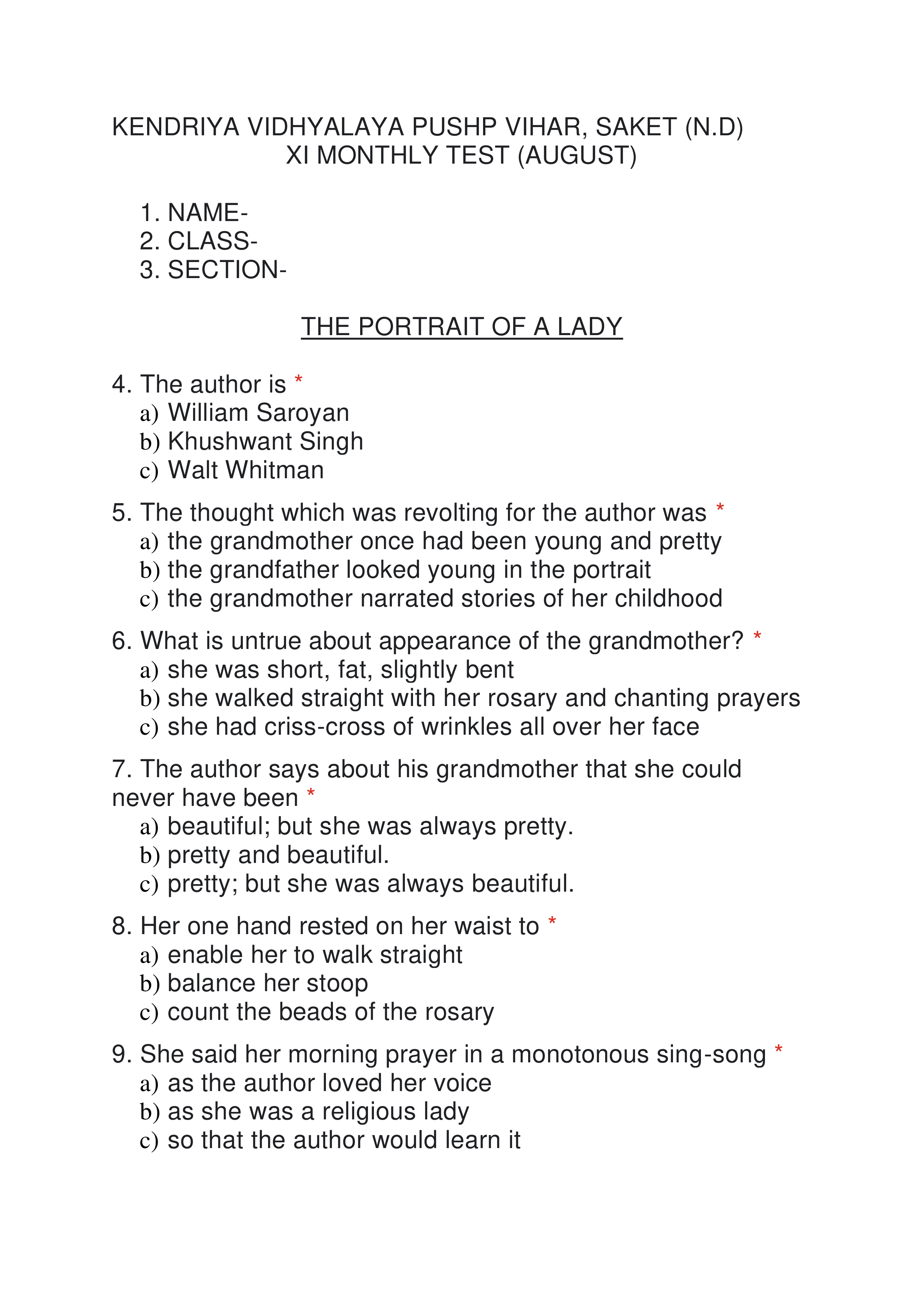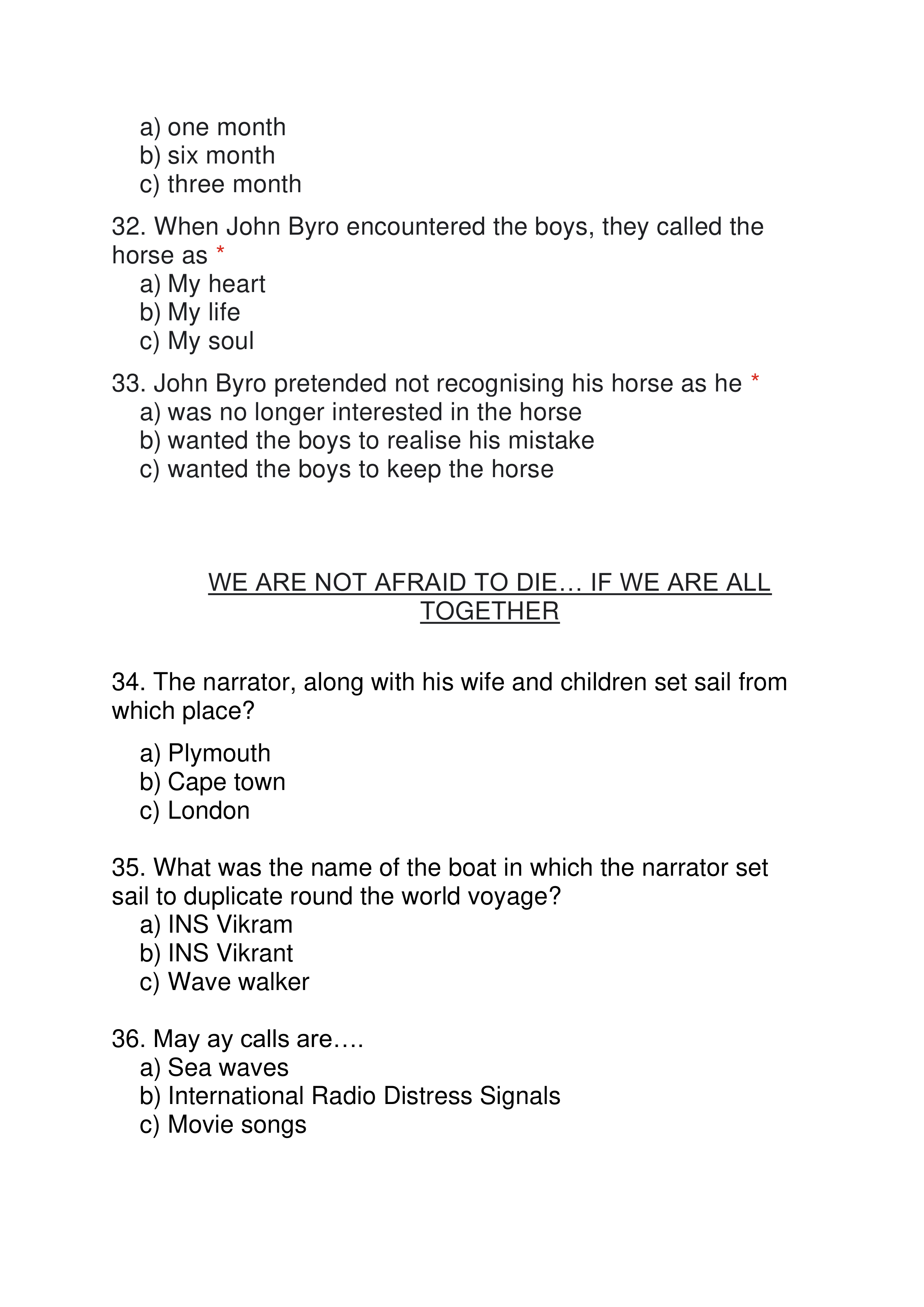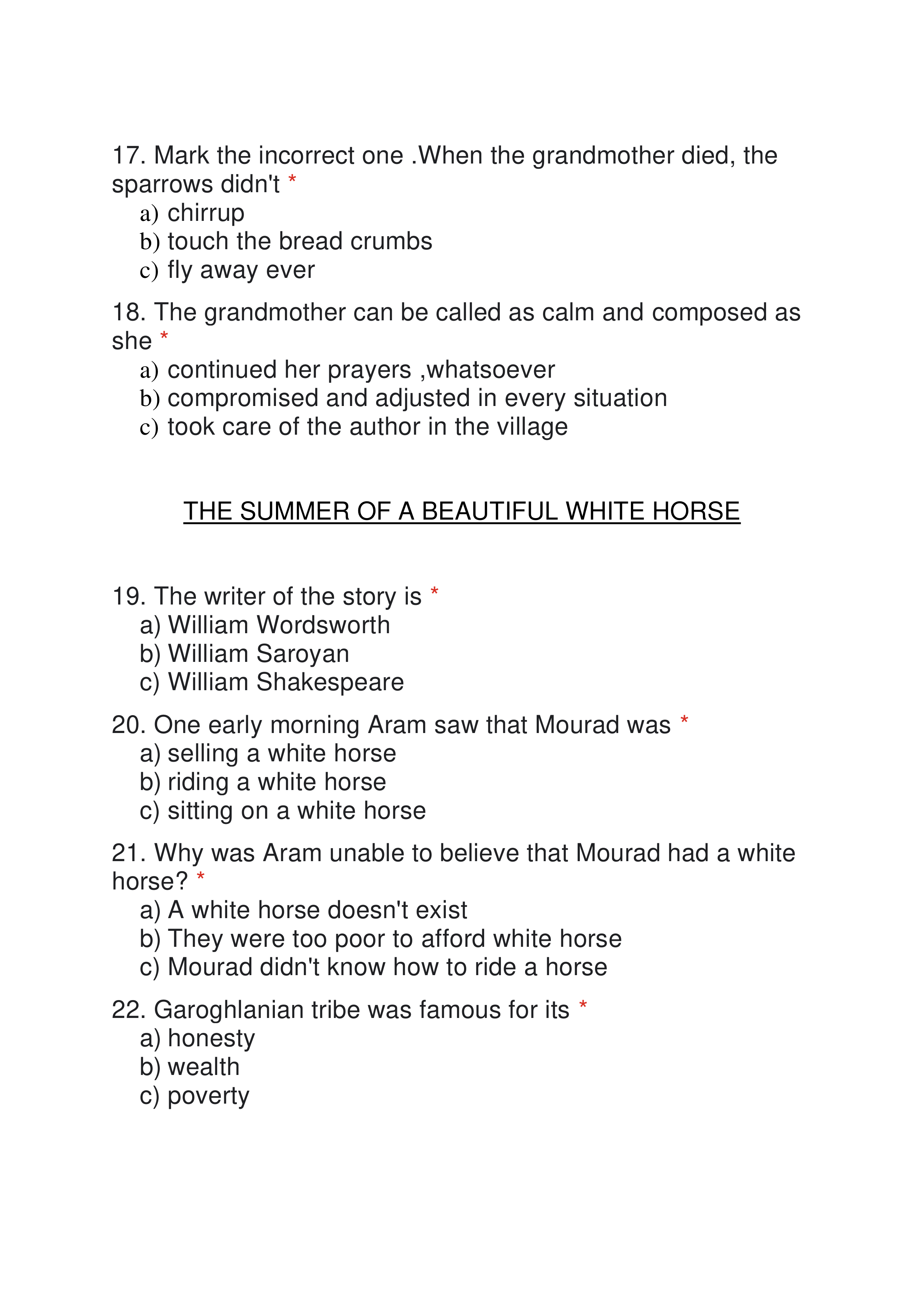 Quiz on The Portrait of a Lady, We are not afraid to die...if we are all together and The summer of a beautiful White horse