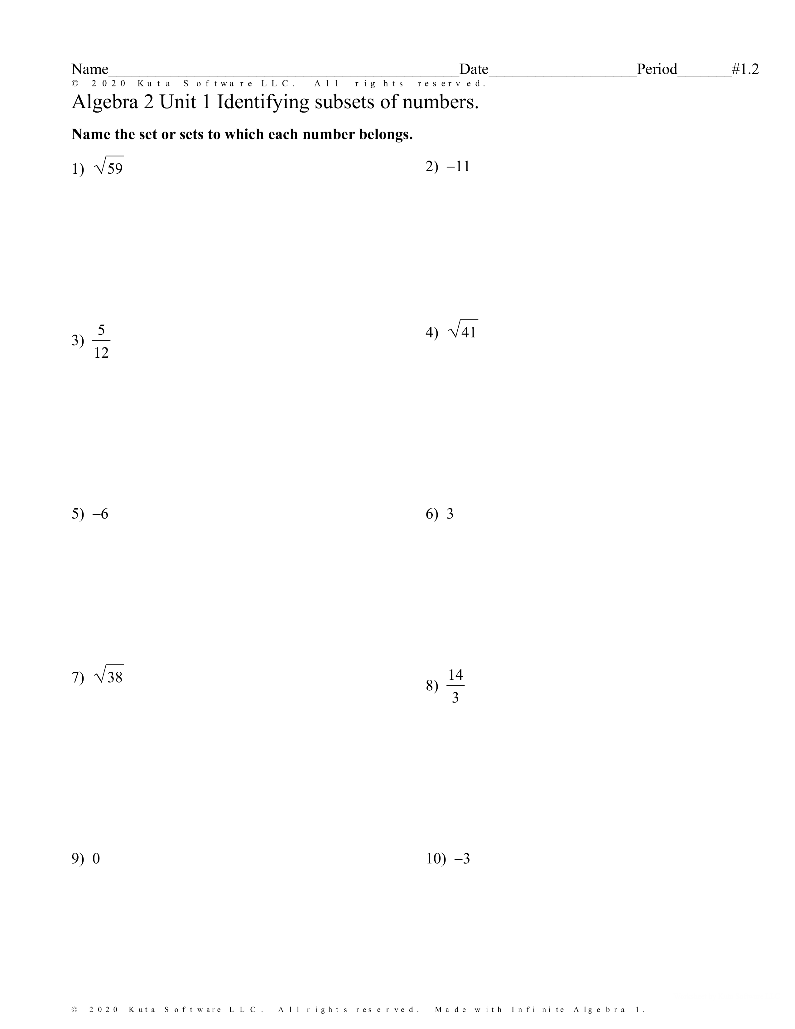 Name the set or sets to which each number belongs.