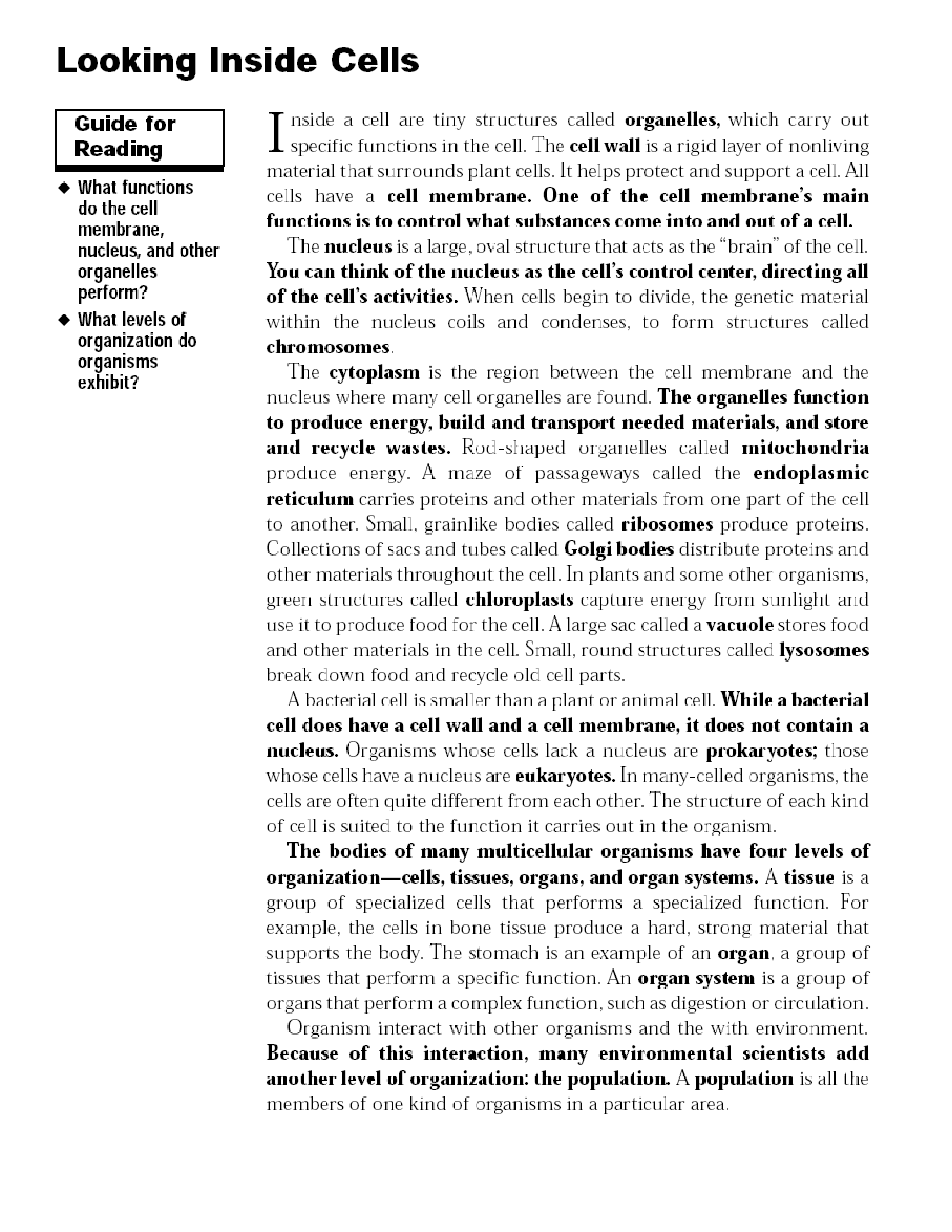 fill in the blank version. Students will read about the cell organelles and answer questions