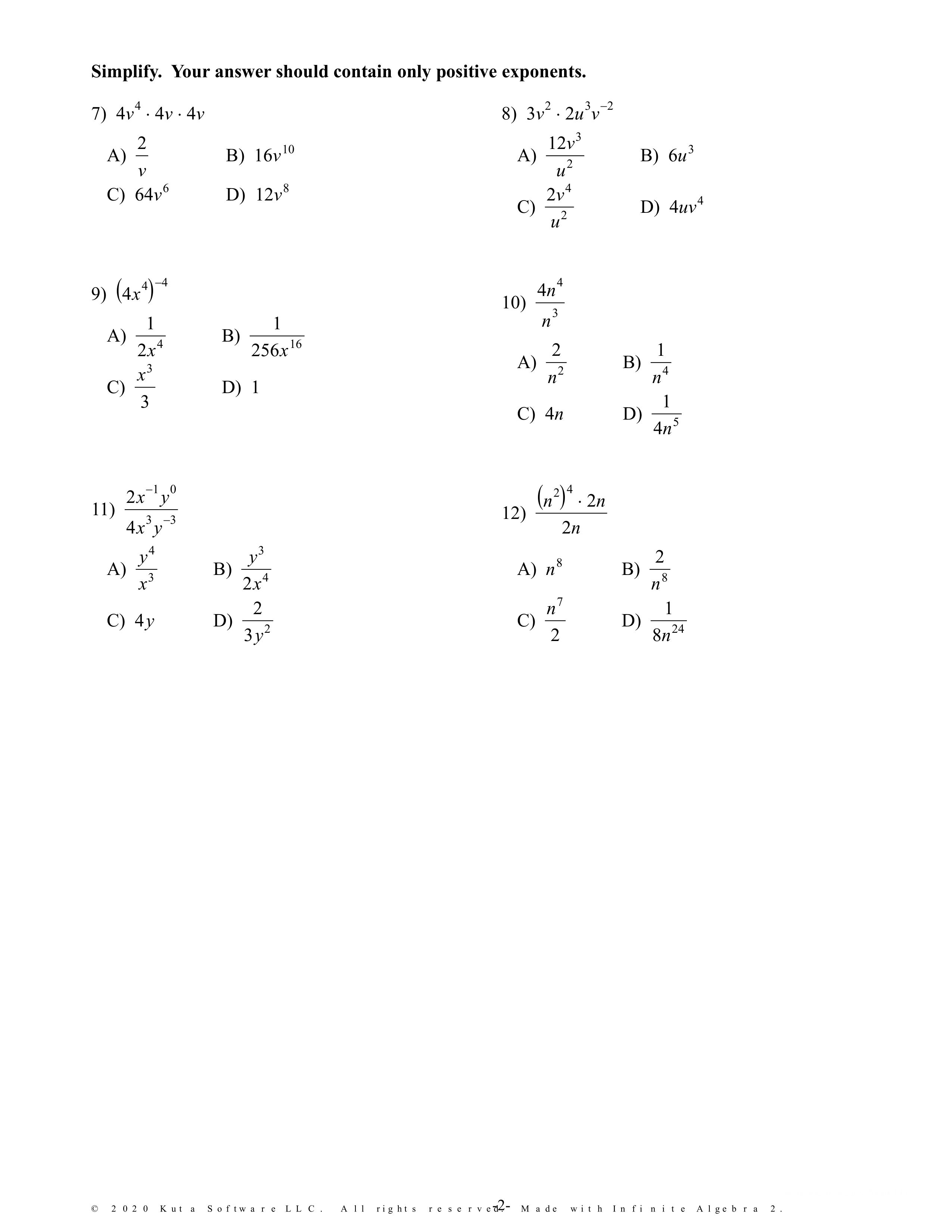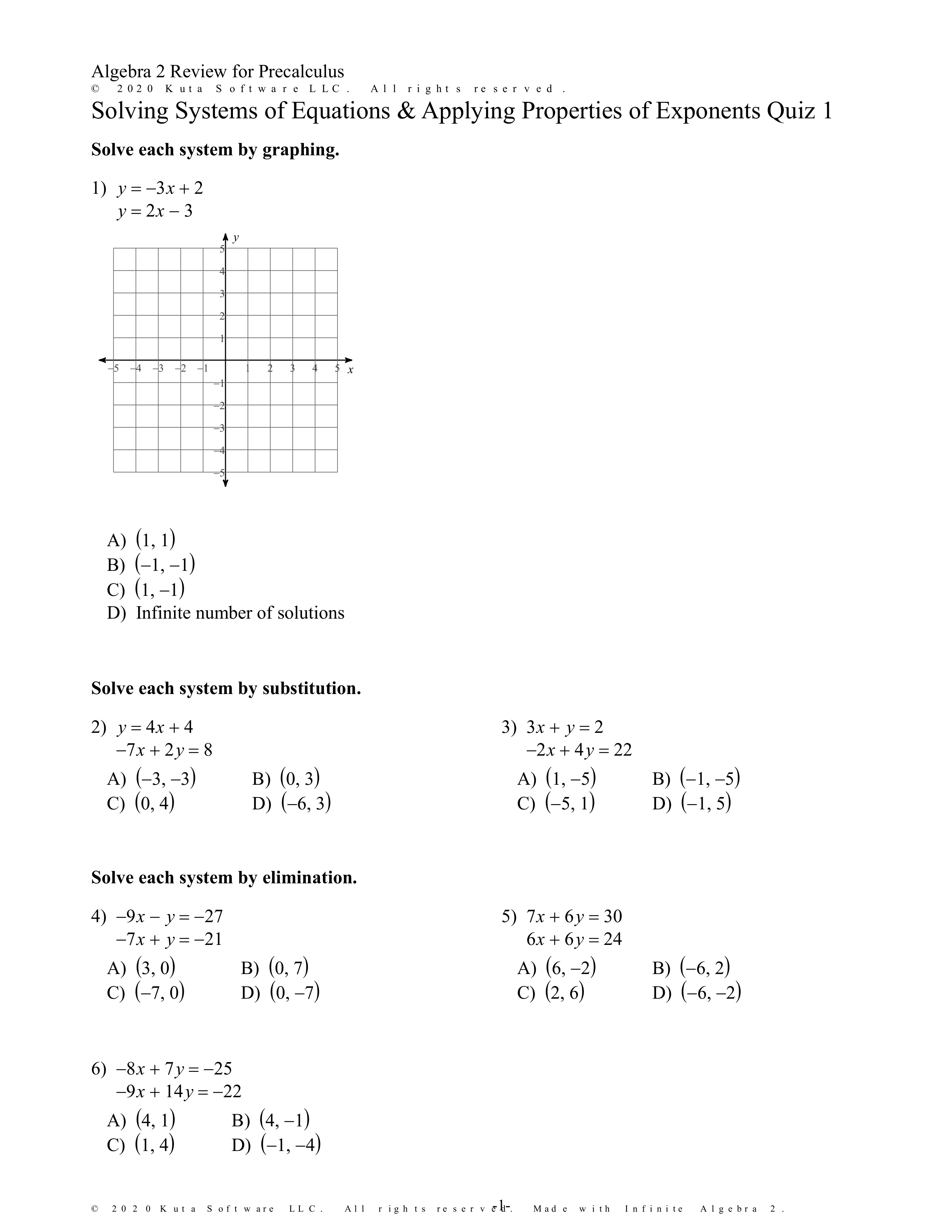 Solving Systems of Equations & Applying Properties of Exponents Quiz 1
