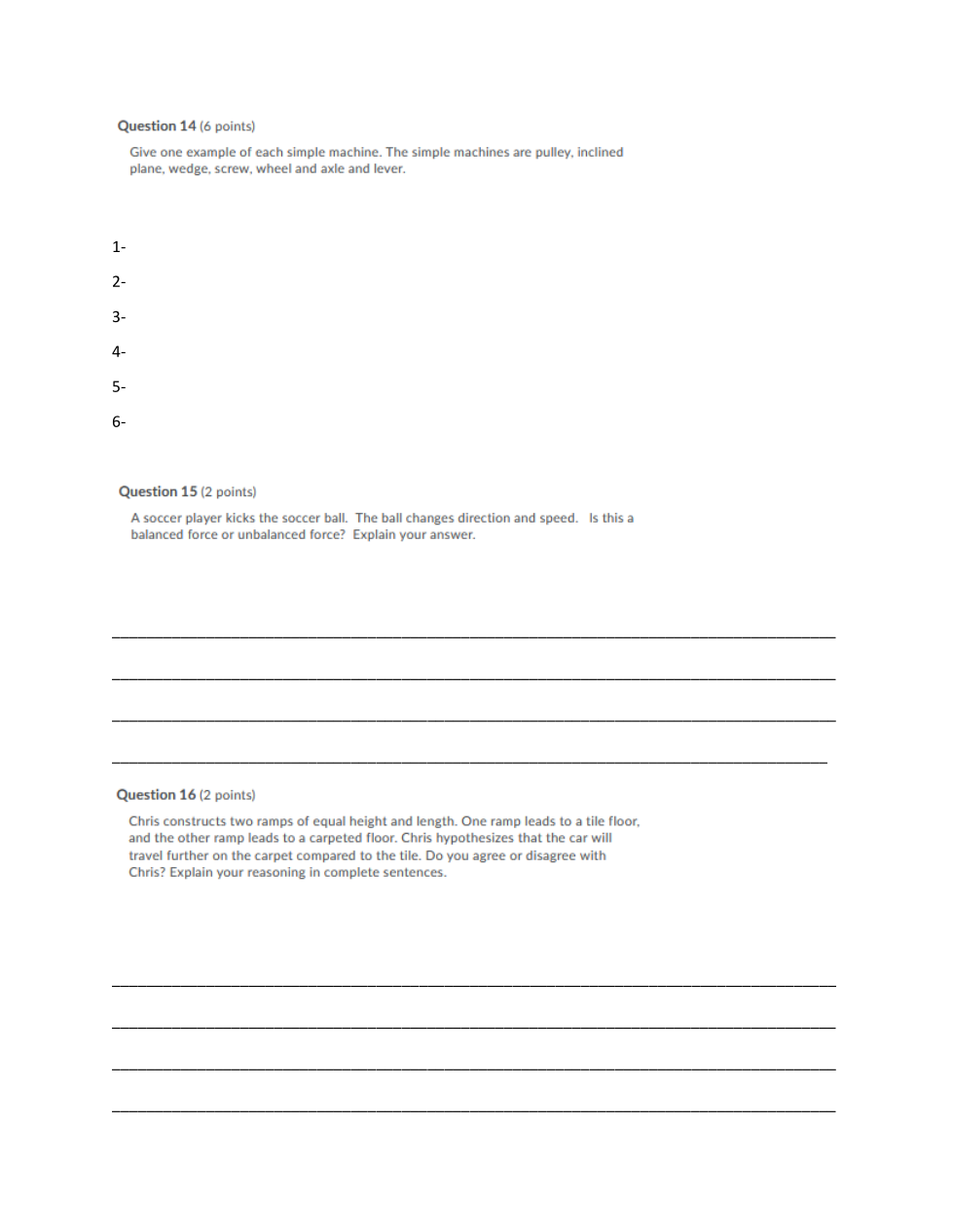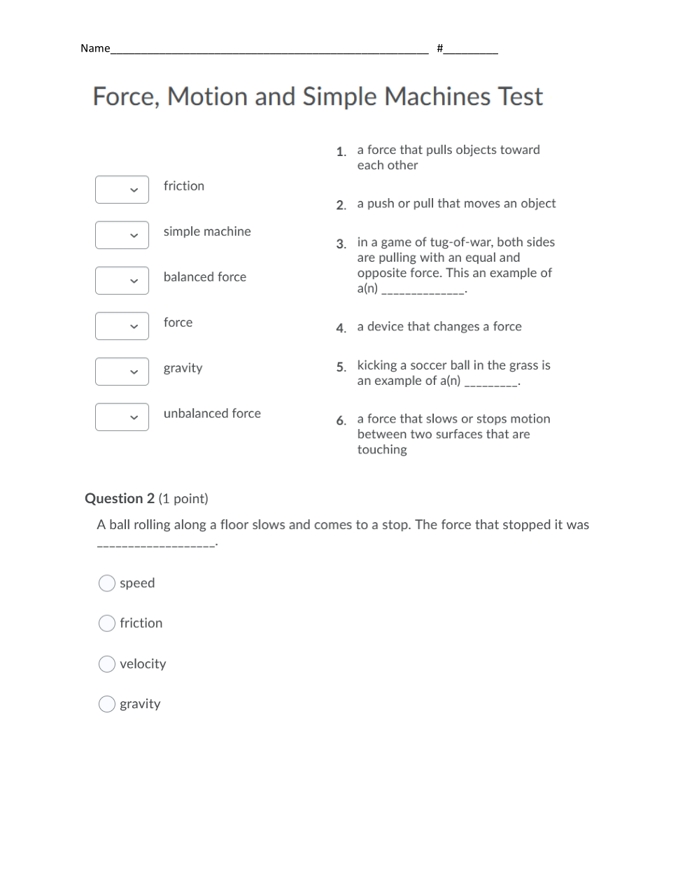FORCE, MOTION, AND SIMPLE MACHINES TEST