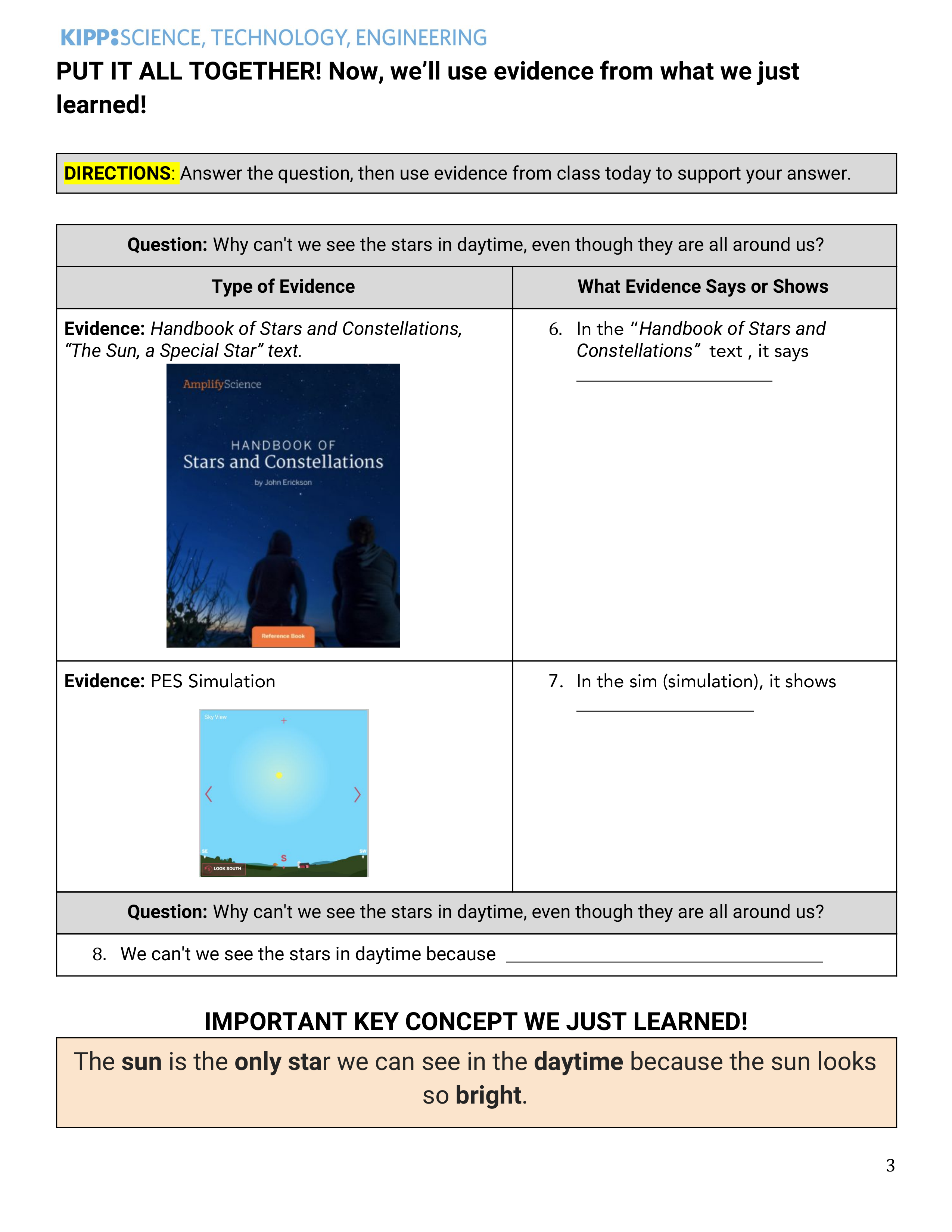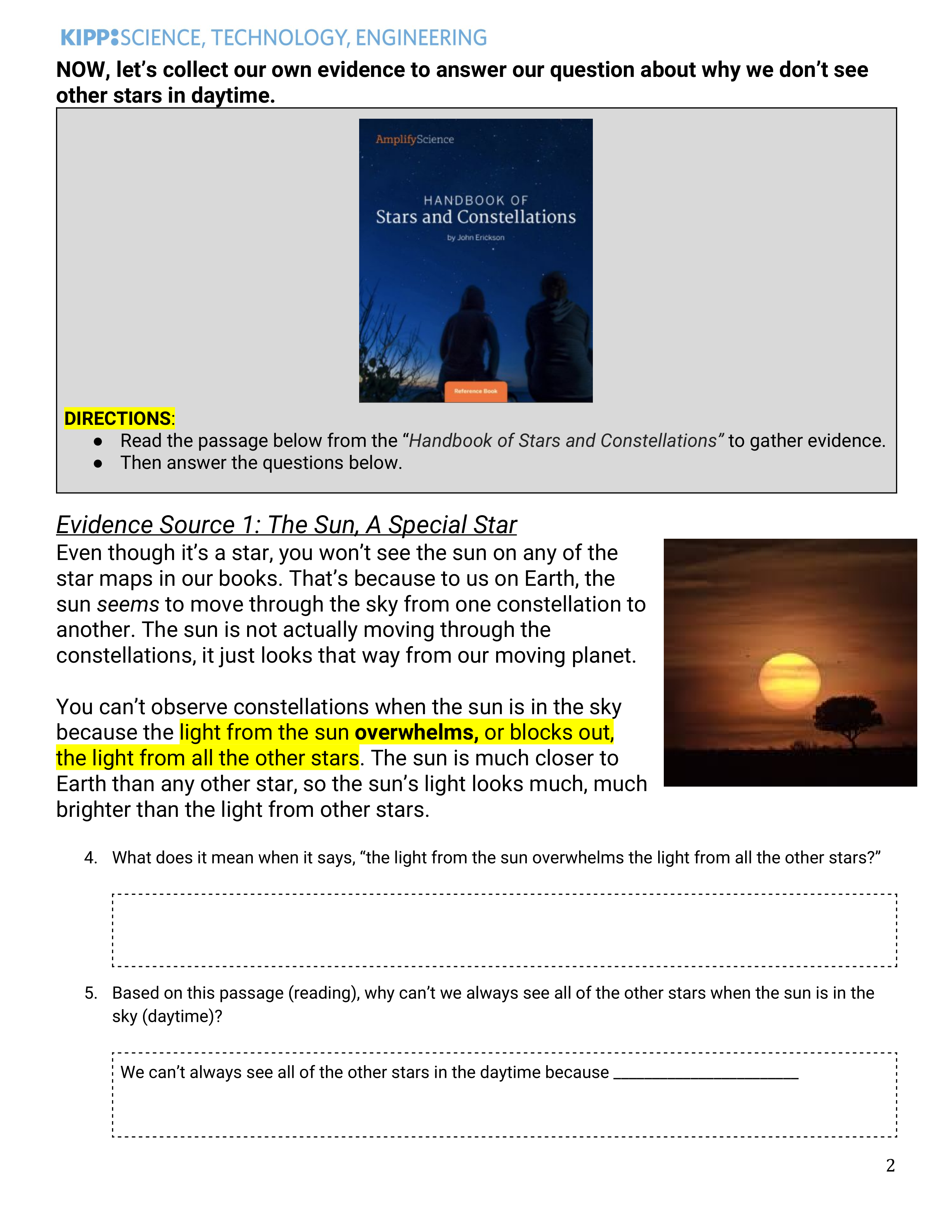 Based on this passage (reading), why can’t we always see all of the other stars when the sun is in the sky (daytime)? Write a sentence, you can use this to help you start your sentence: We can’t always see all of the other stars in the daytime because ___________