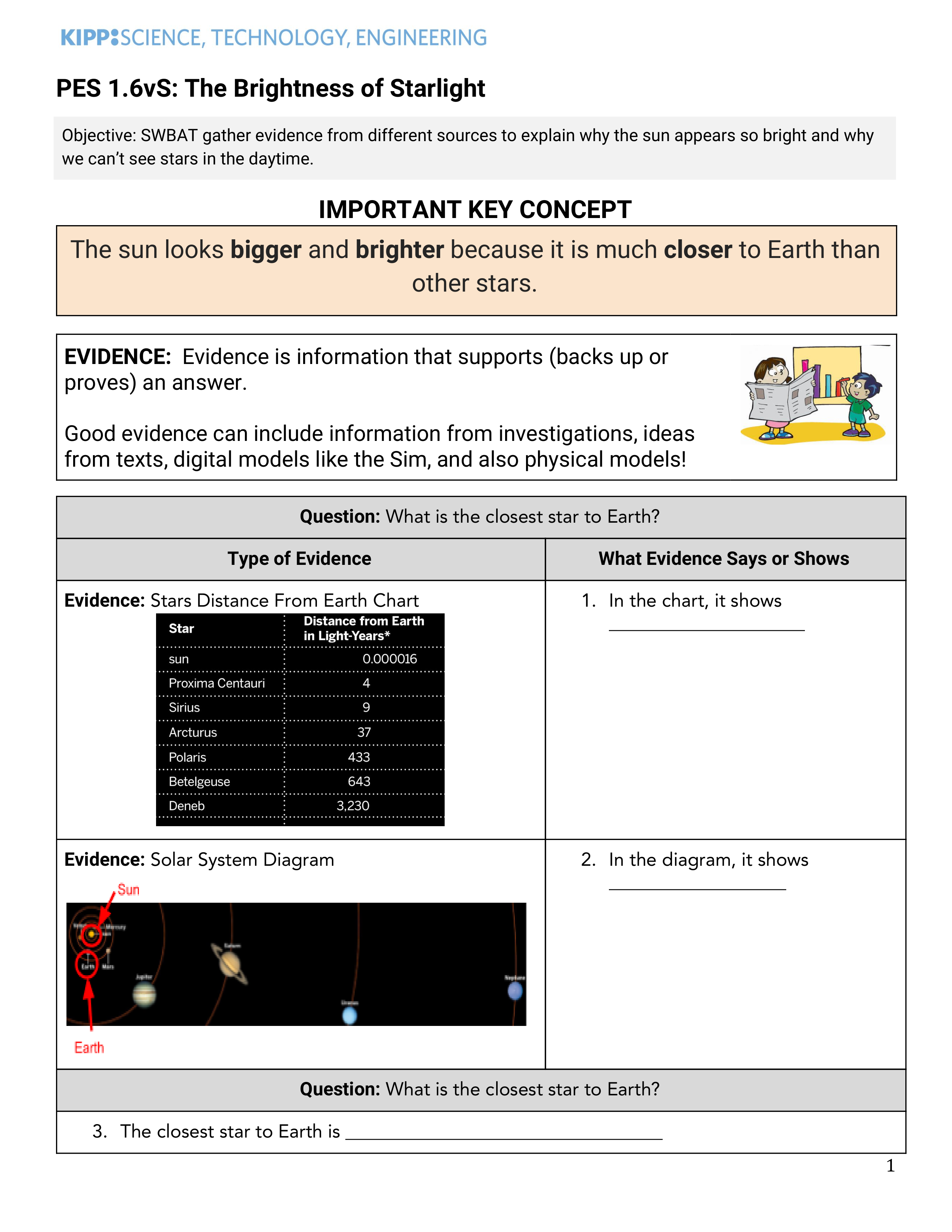 Use Evidence from the Stars Distance From Earth Chart to support or prove your answer. Write a sentence, you can use this to help you start your sentence: In the chart, it shows ____________