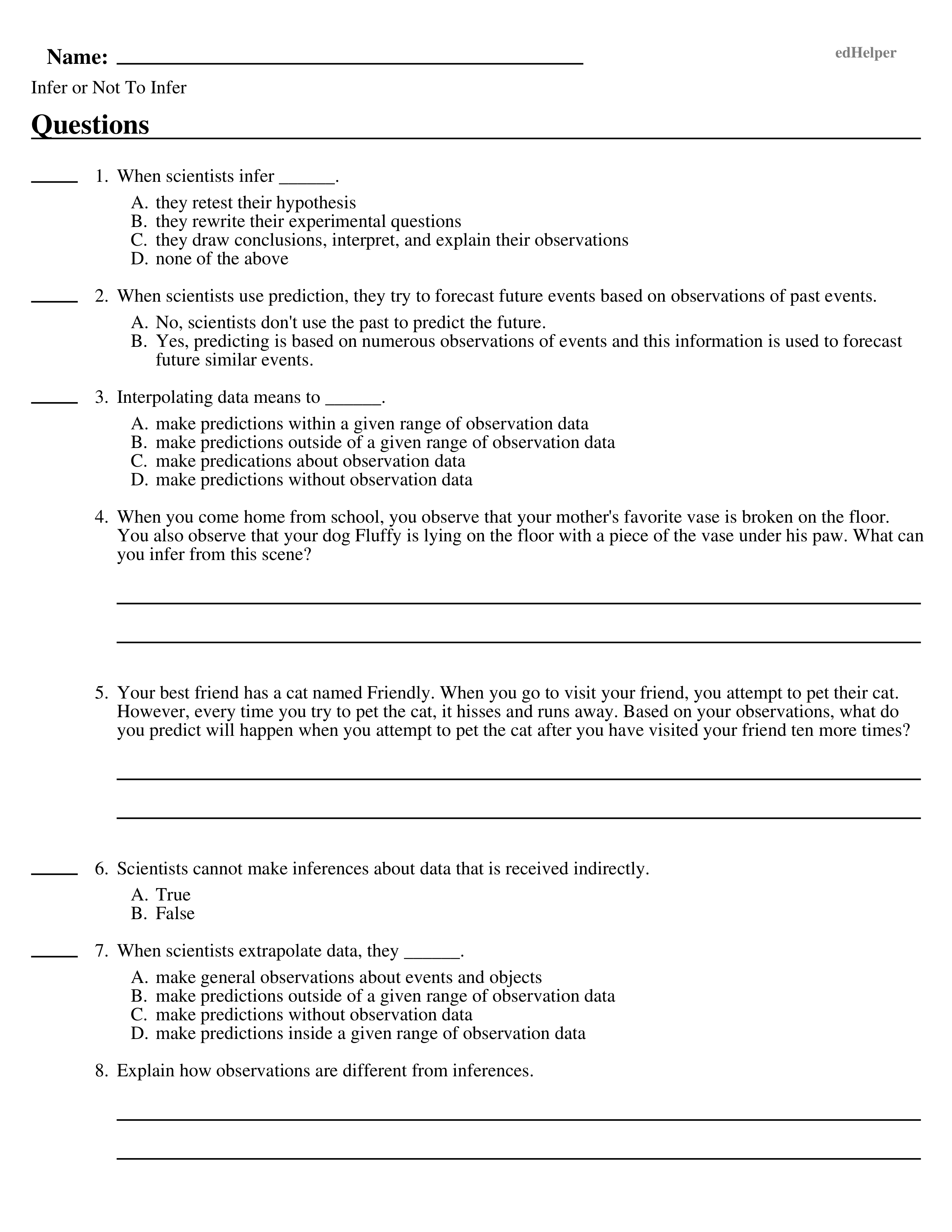 When you come home from school, you observe that your mother's favorite vase is broken on the floor. You also observe that your dog Fluffy is lying on the floor with a piece of the vase under his paw. What can you infer from this scene?
