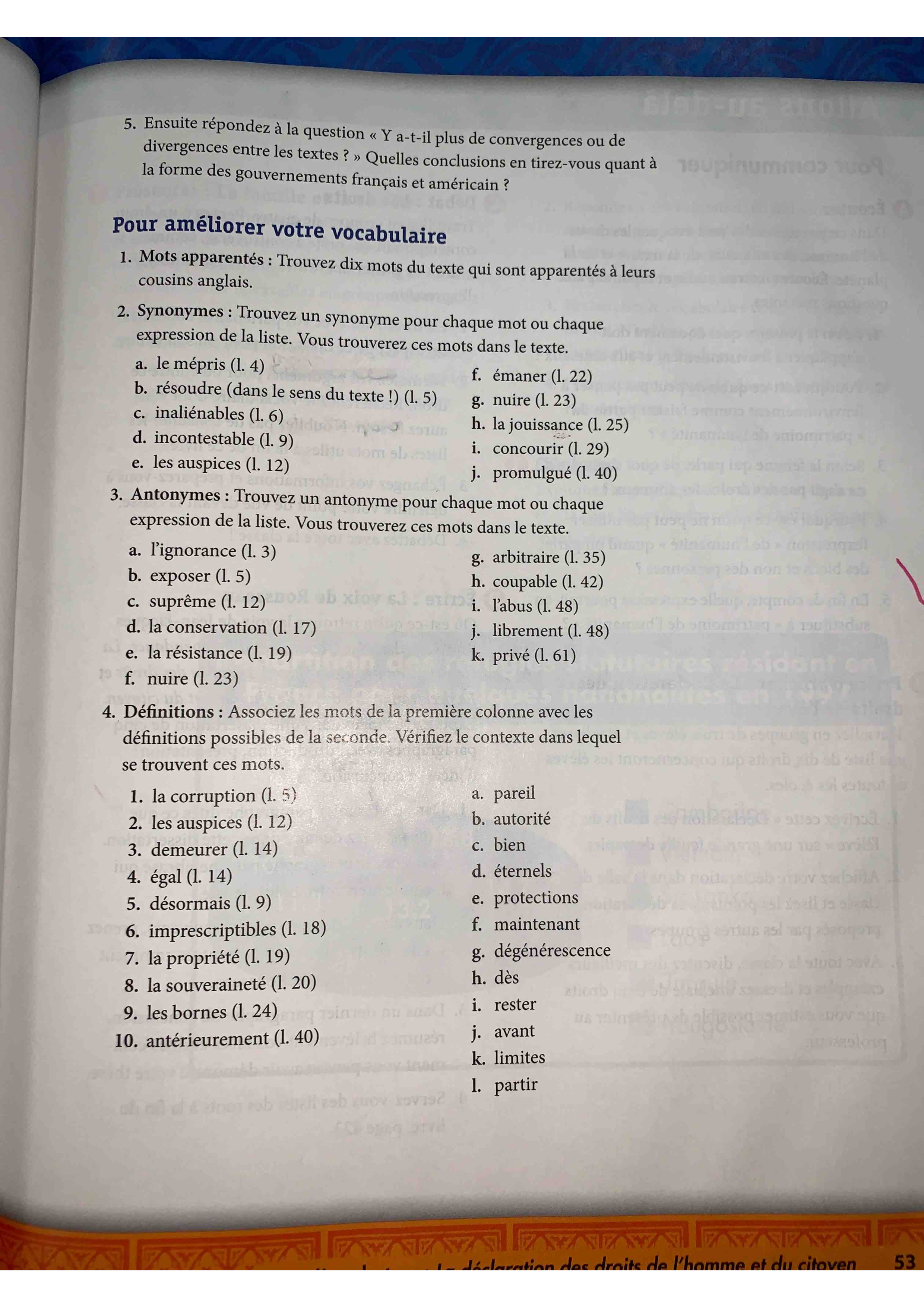Associez les mots de la première colonne avec les définitions possibles de la seconde.