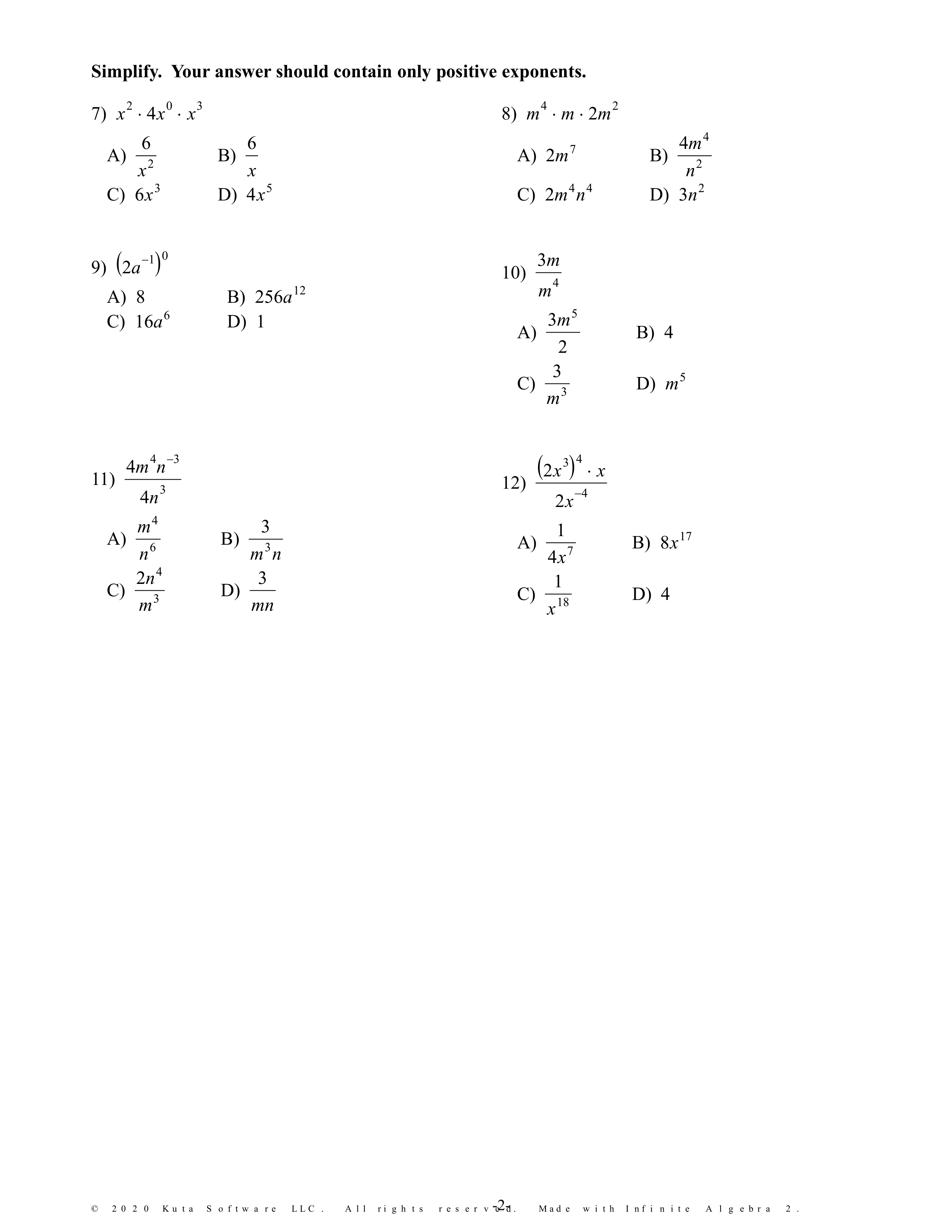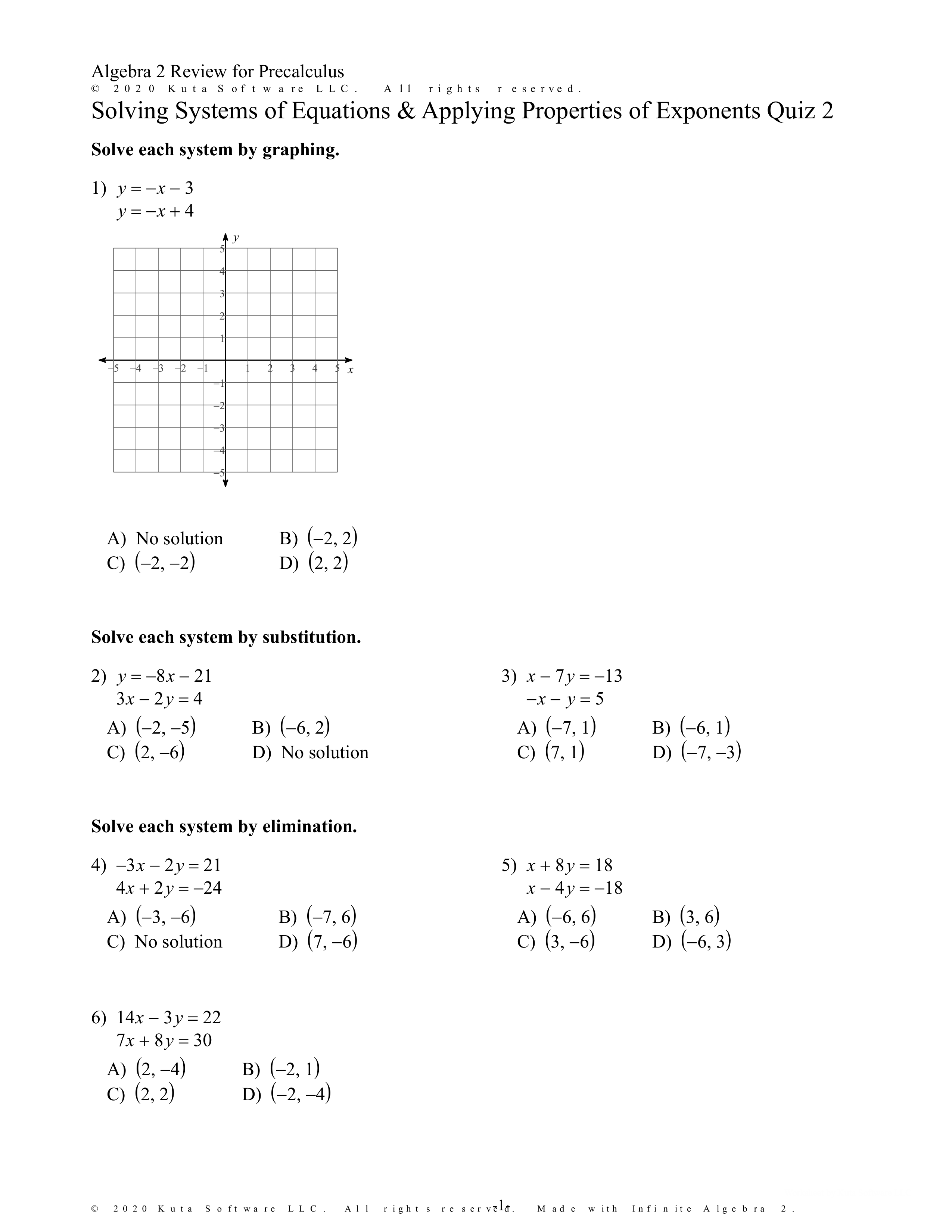 Solving Systems of Equations & Applying Properties of Exponents Quiz 2