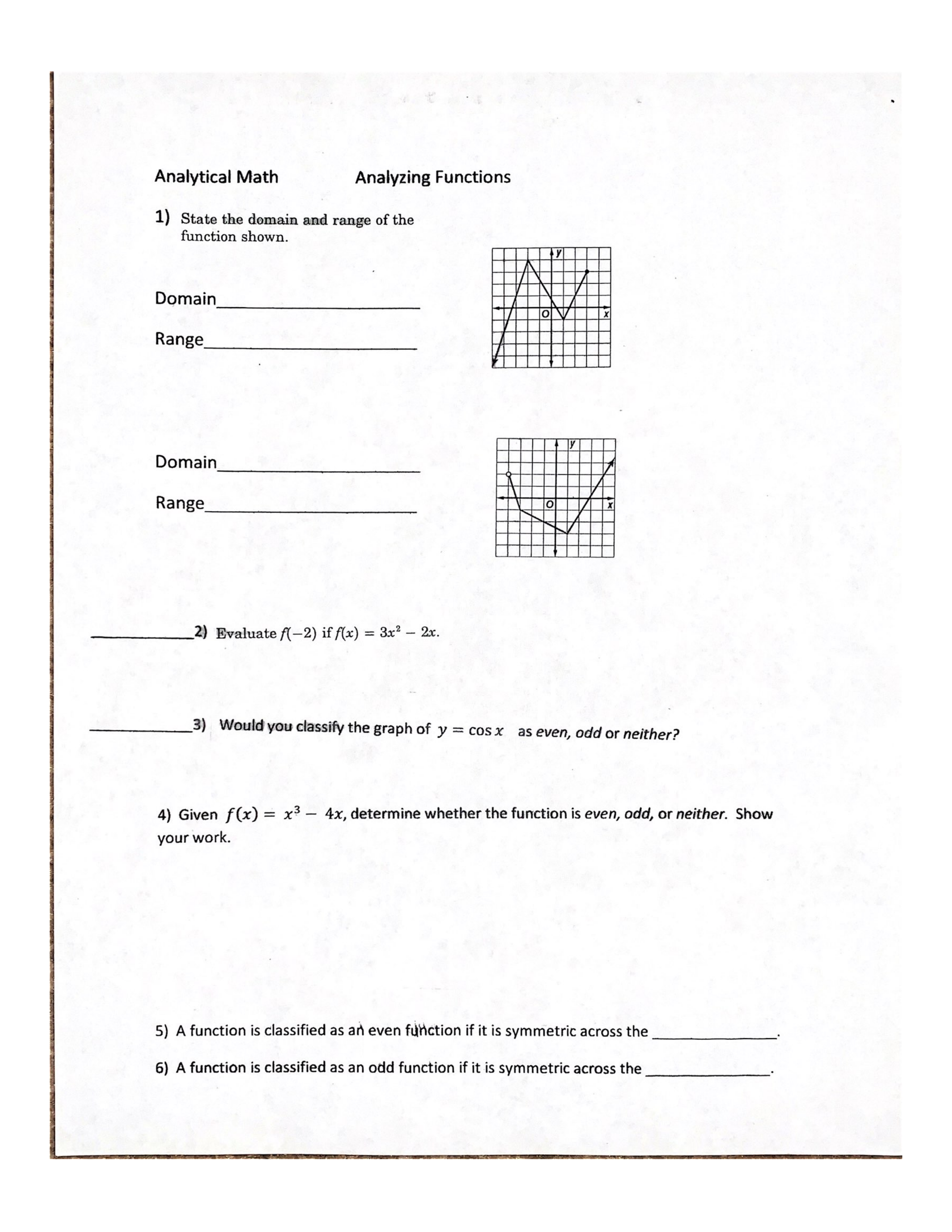 Analyzing Functions TEST
