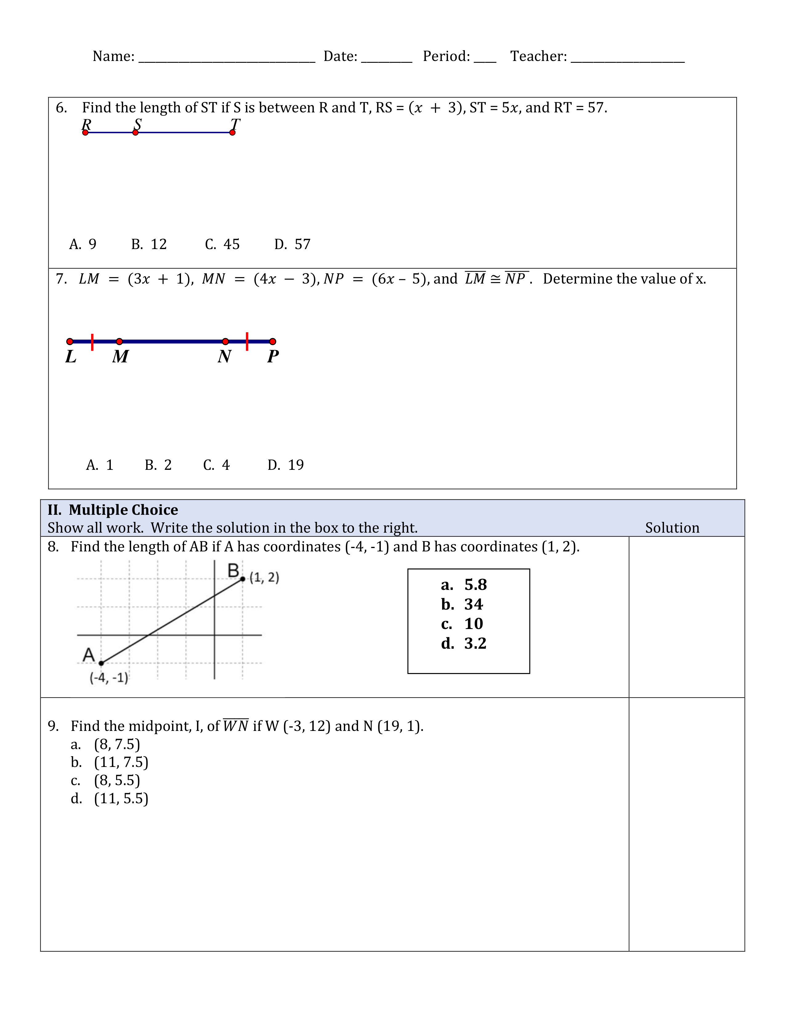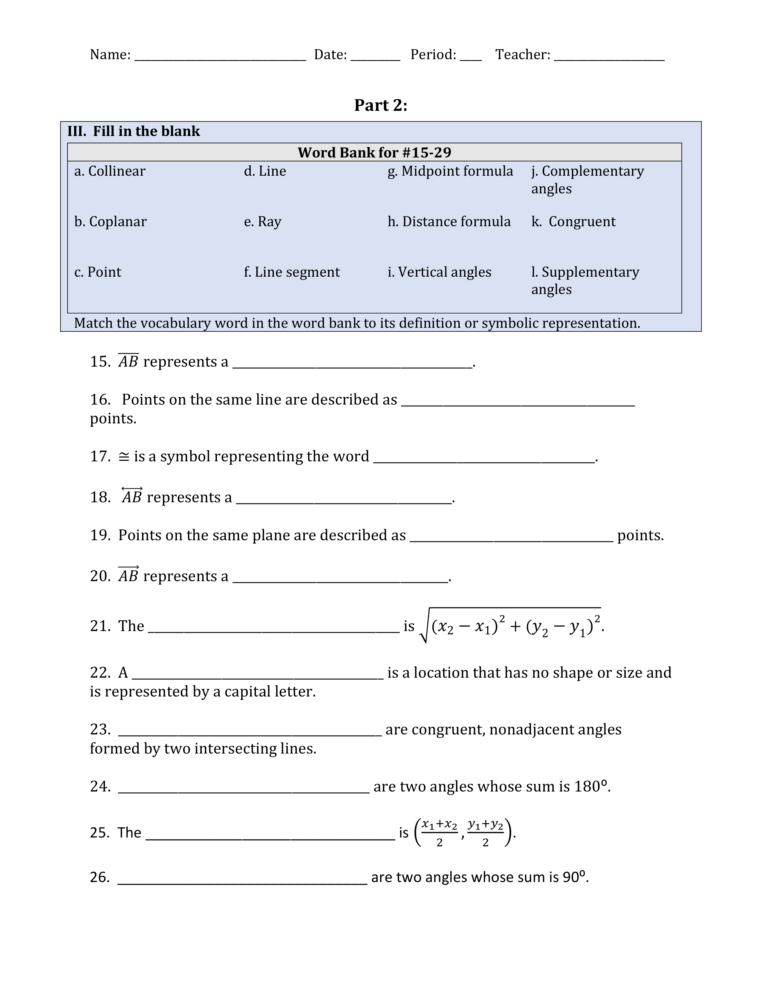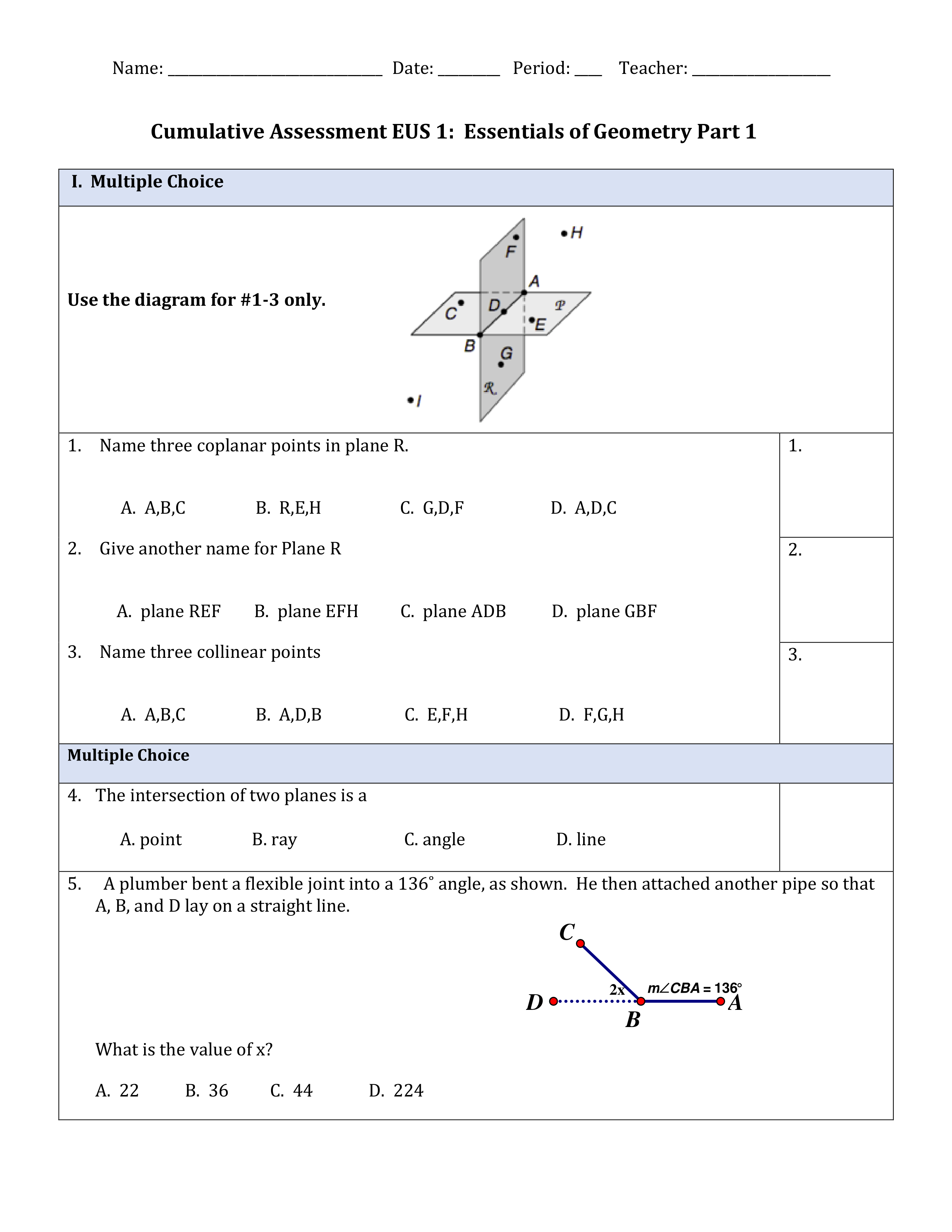 Unit 1 Geometry Test