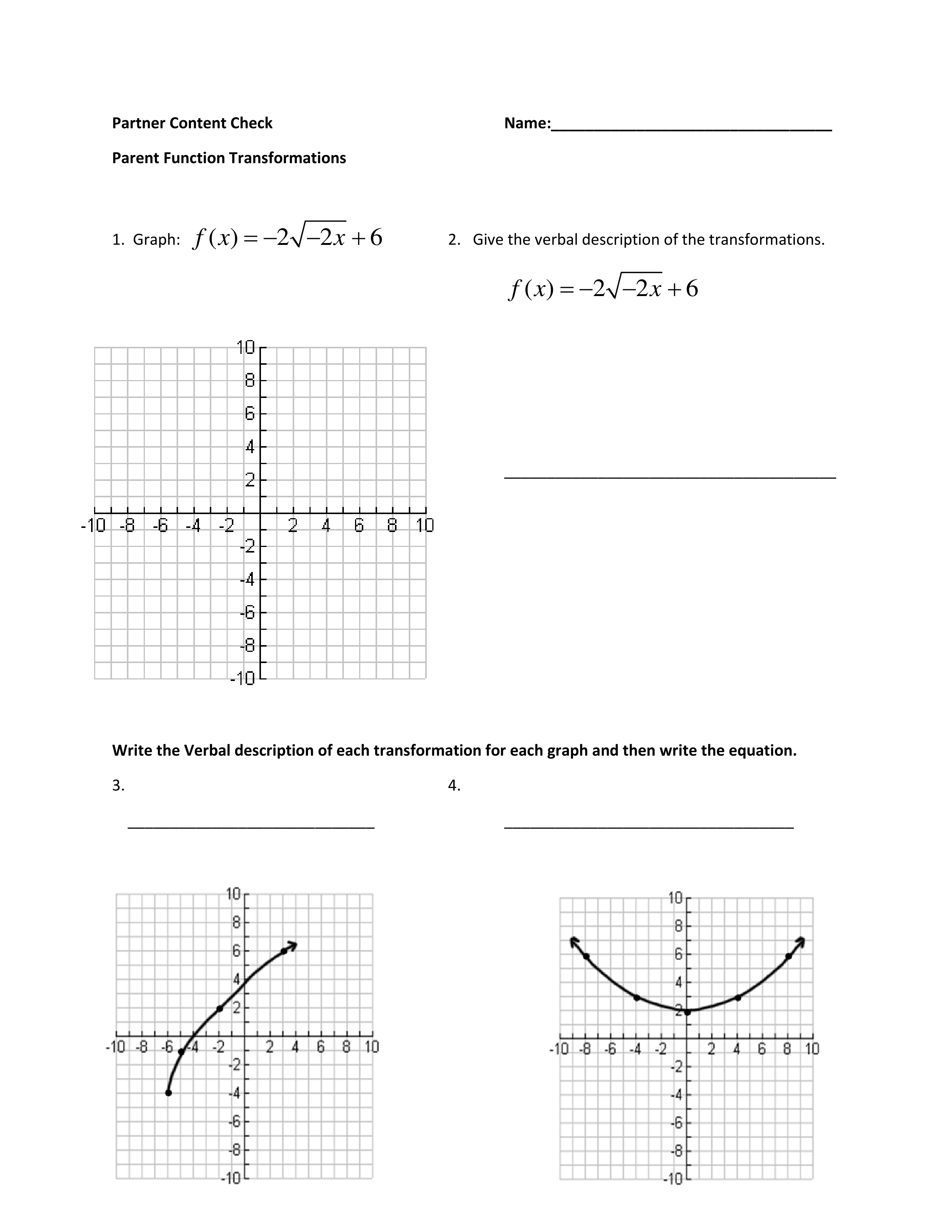 Which equation represents a radical function with a vertical dilation by a factor of 2, a vertical translation down 4 and a horizontal translation left 4.?