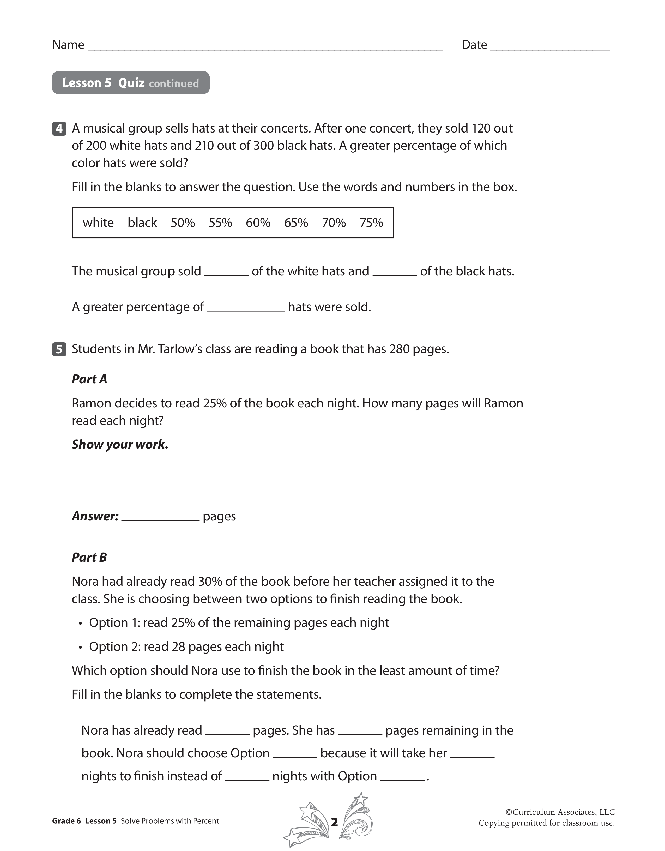 Retype the sentence with the blanks filled in using the number bank.Show your work for how you got your answer