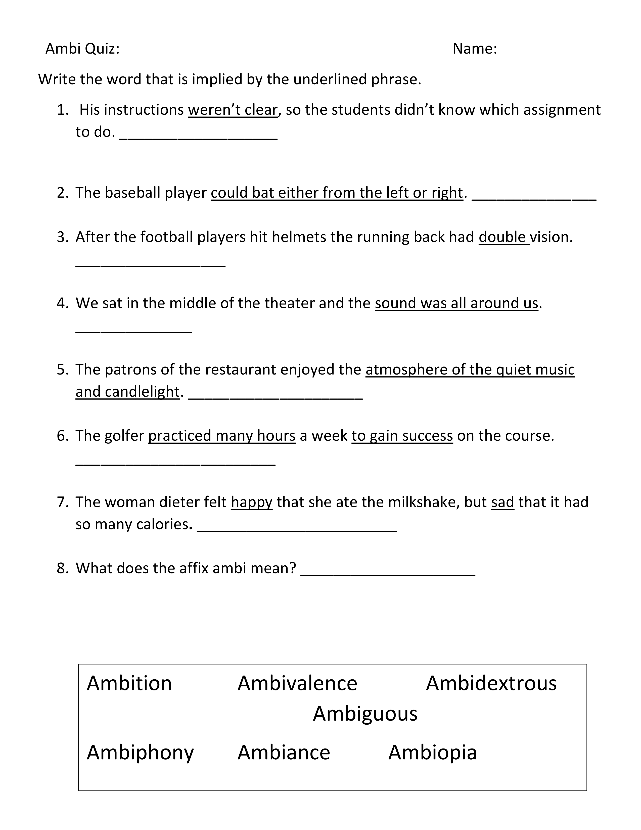 In the box below, type in what you think the affix ambi- means.