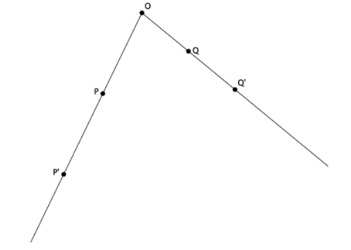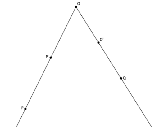 Let there be a dilation from center O with a scale factor r = 4. Then dilation(P) = P′ and dilation(Q) = Q′ 3. .