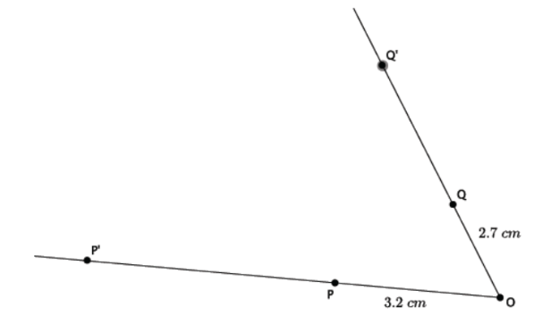 |OP| = 3.2 cm, and |OQ| = 2.7 cm as shown.