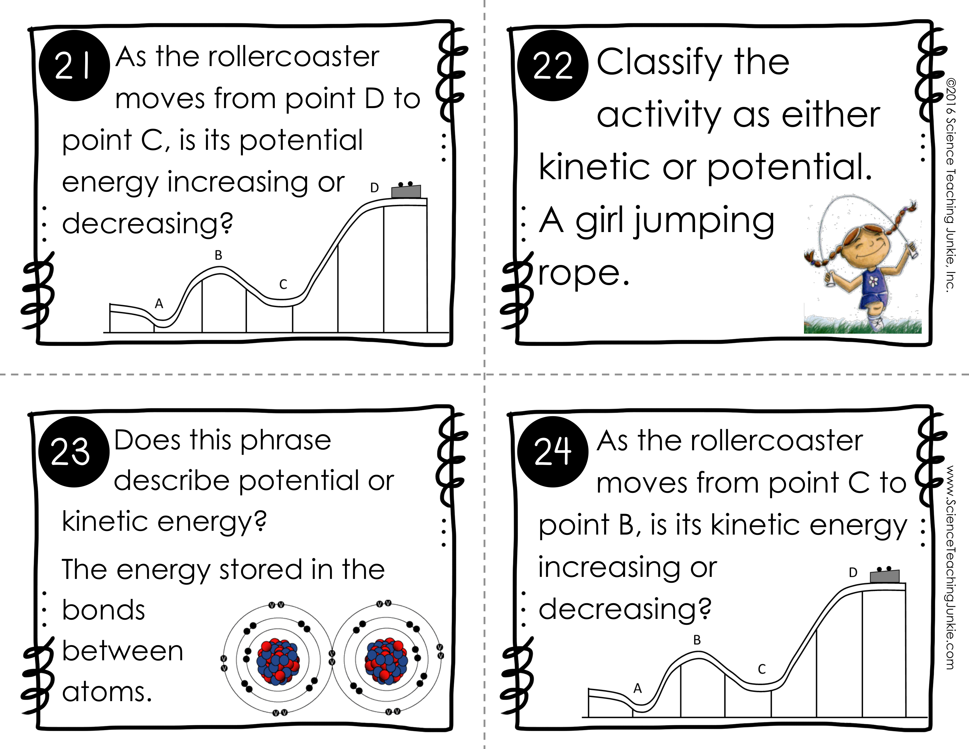 As a little girl slides from Point A to Point B on the slide her potential energy____________________(increases or decreases?) and her kinetic energy _____________________(increases or decreases)?