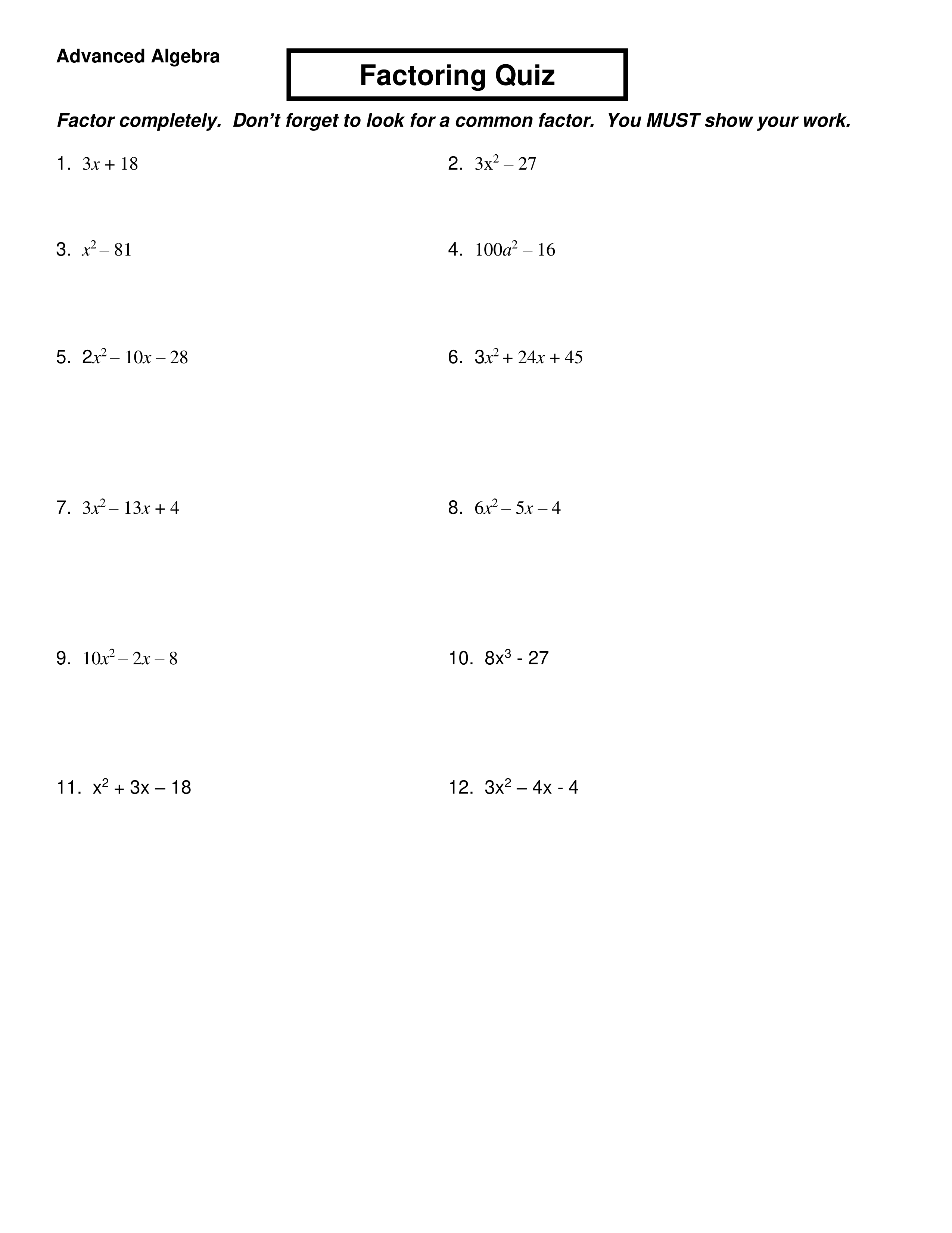 Factoring Quiz 1