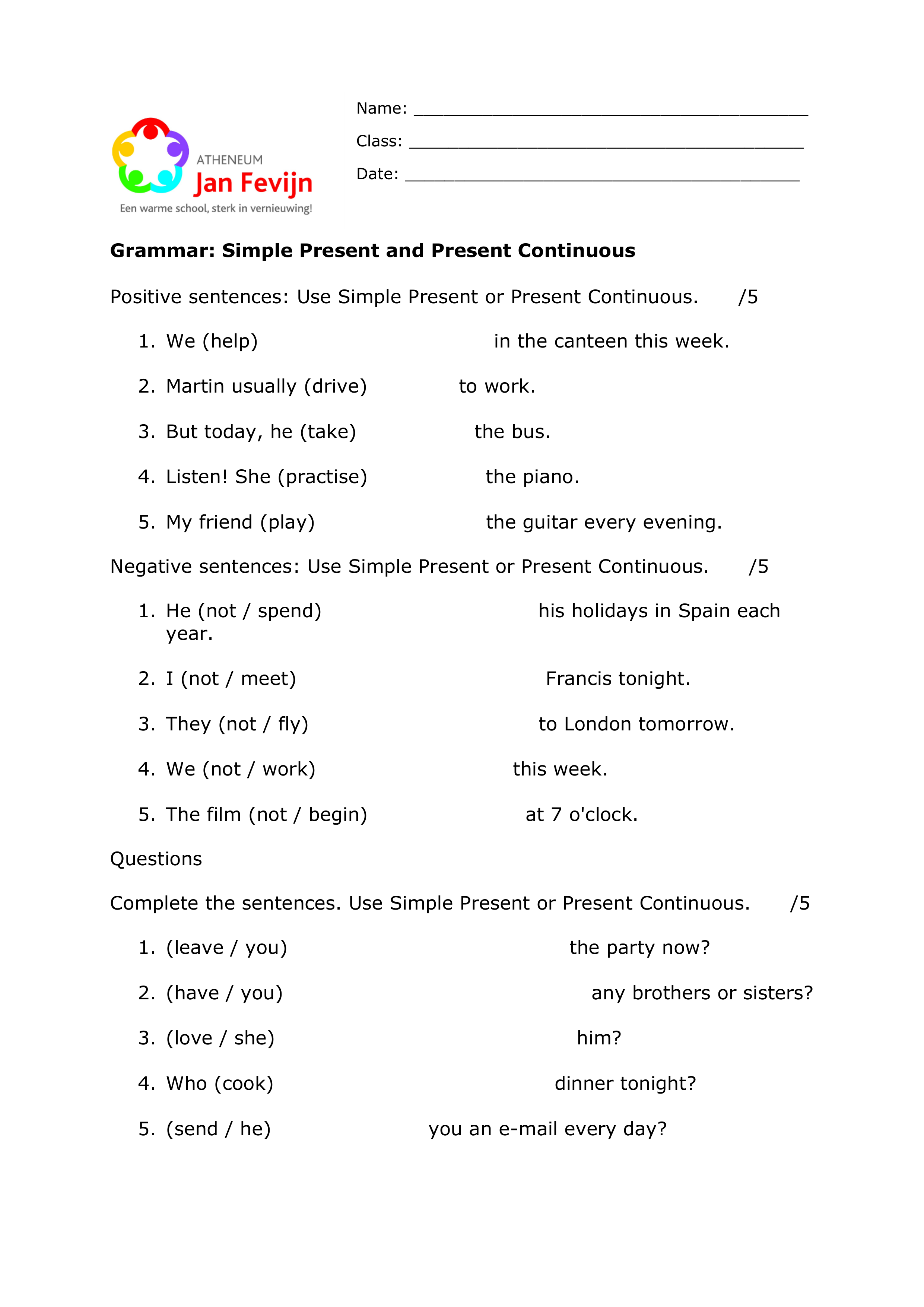 Simple present of present continuous