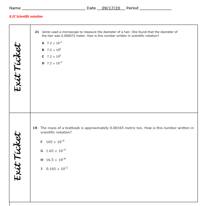 September 17th Exit Ticket (8.2C Scientific Notation)