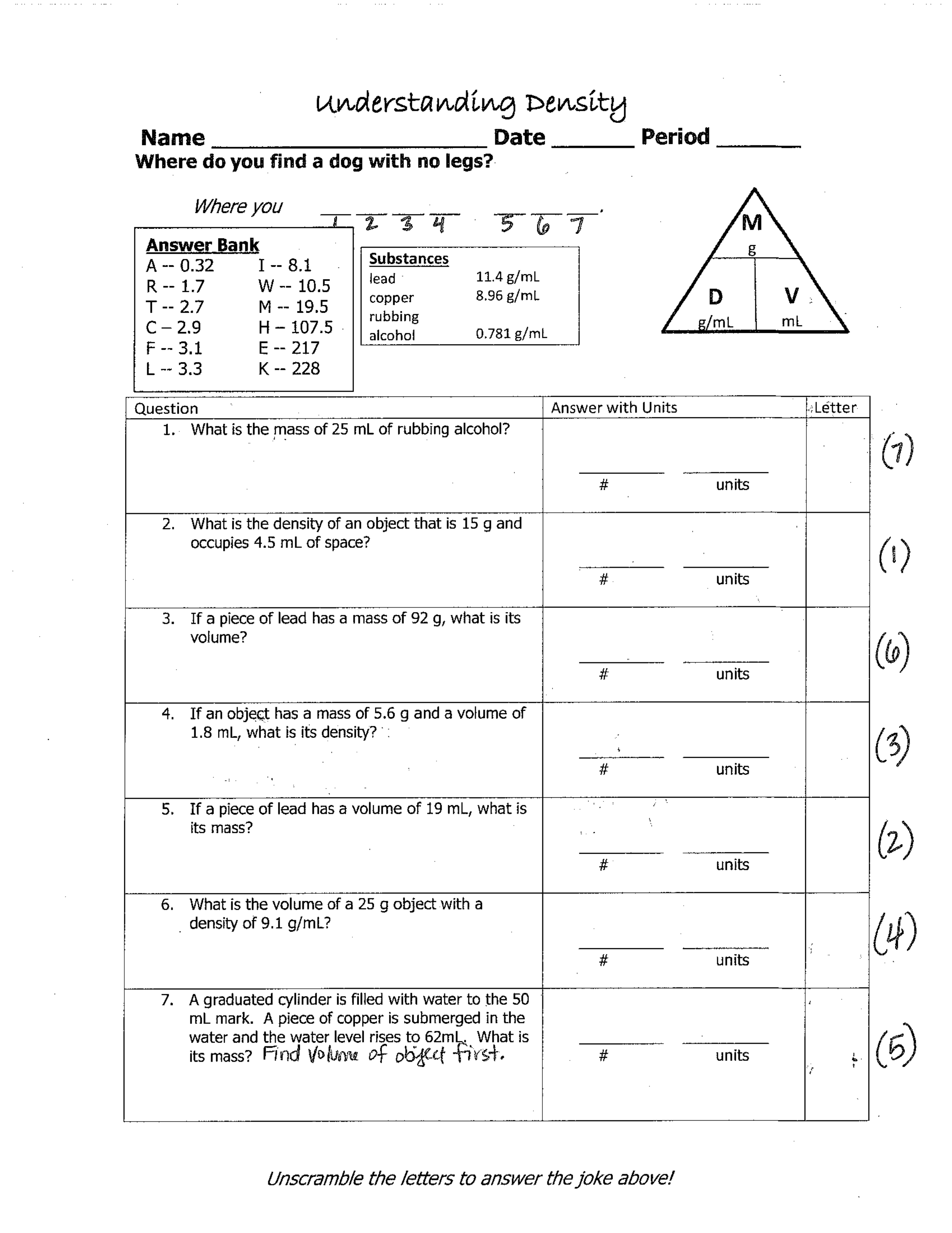 What is the density of an object that is 15 g and occupies 4.5 mL of space? (unit)