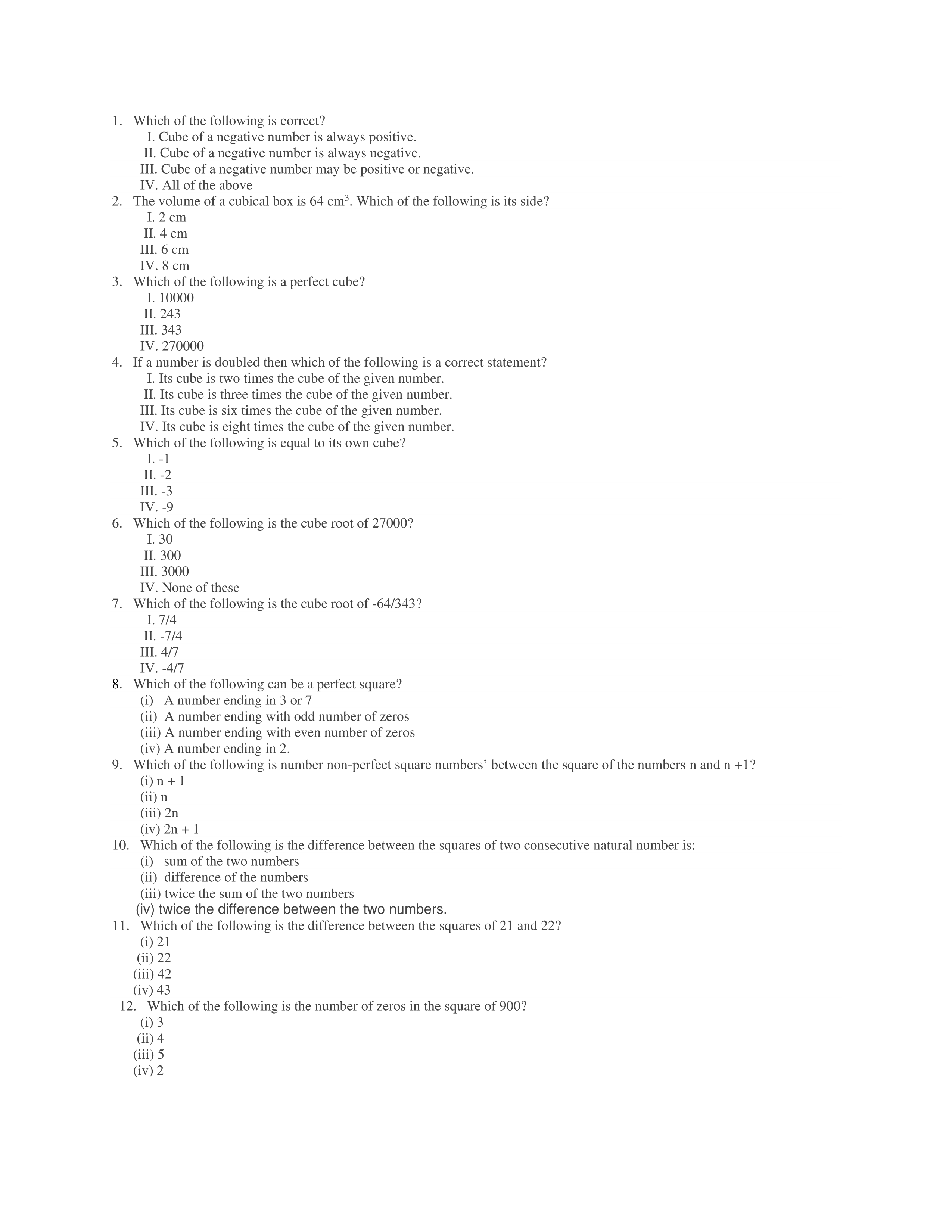 TEST OF SQUARE AND CUBES-CLASS 8