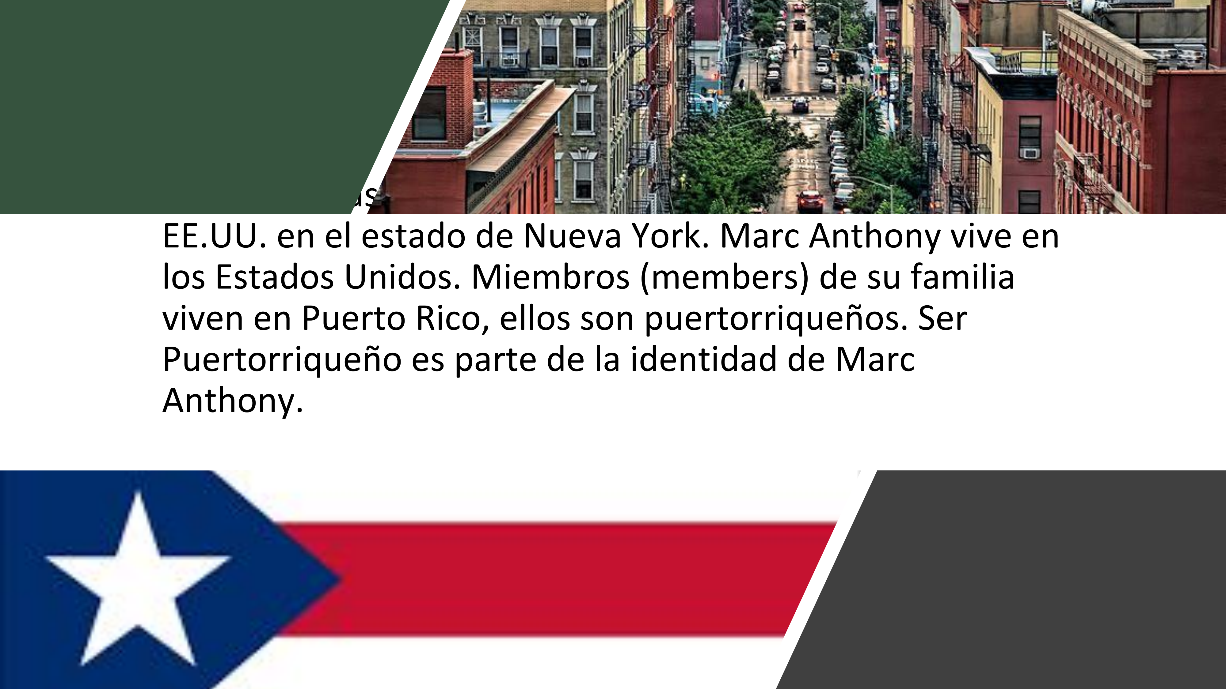 Una parte de la identidad de Marc Anthony es ser puertorriqueño.