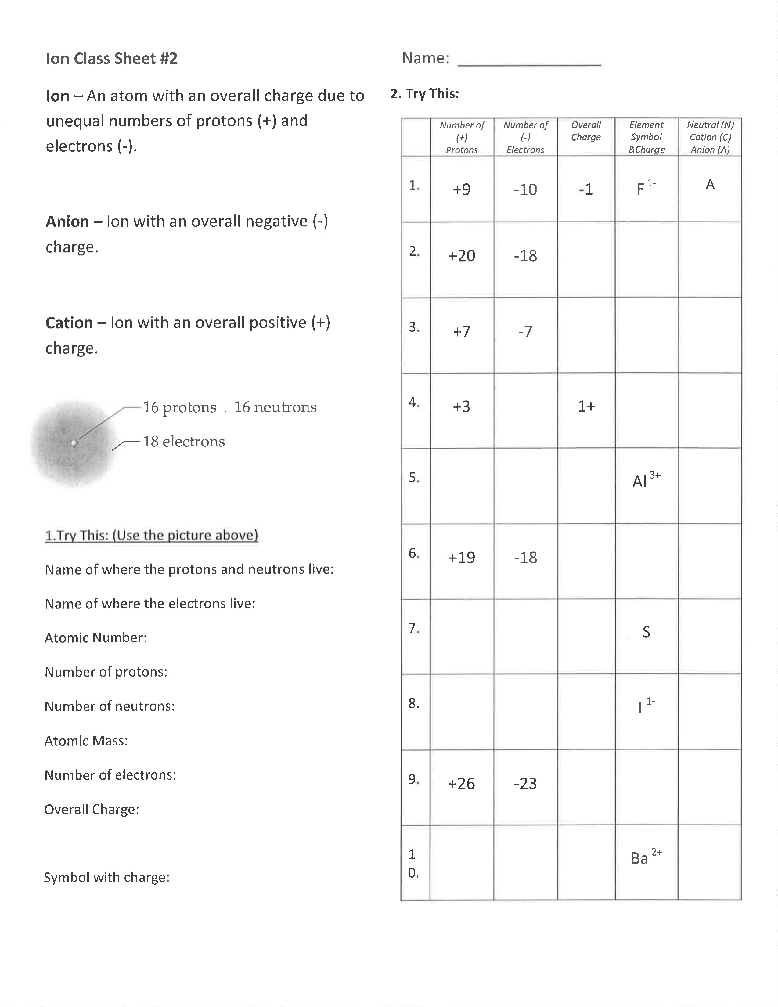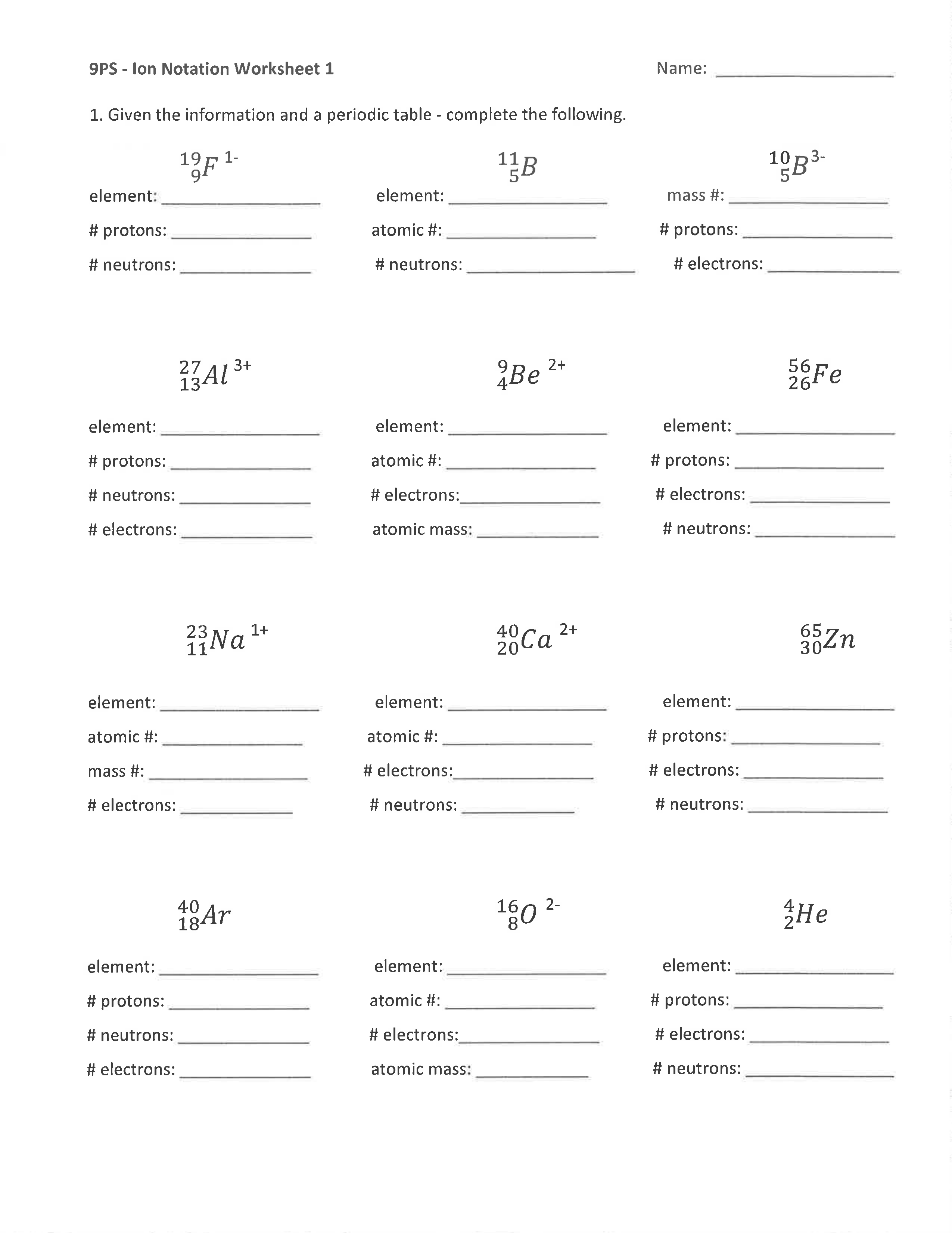 element symbol and charge?