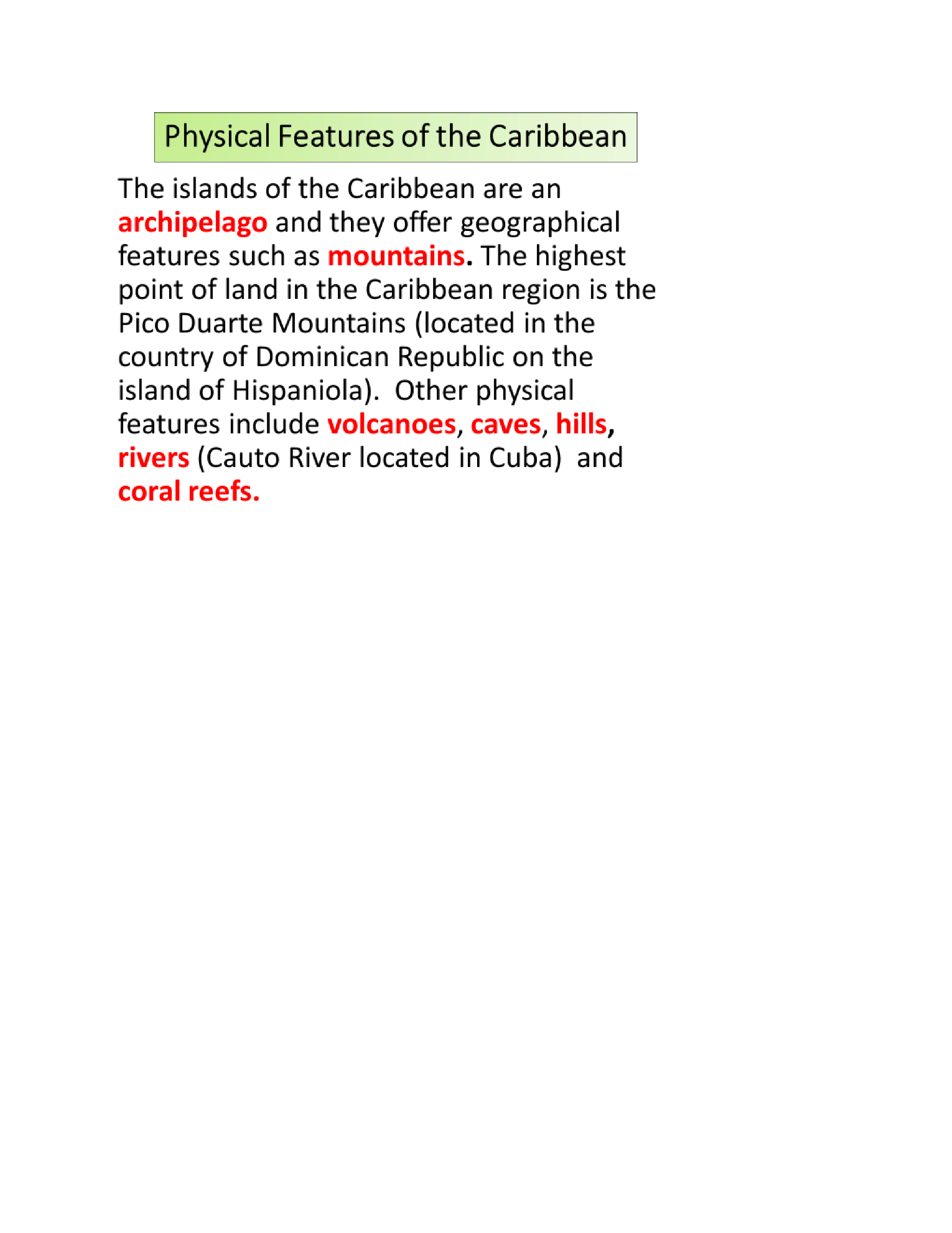 Exit Card - In a paragraph or two, describe the physical features of the Caribbean. (Level3)