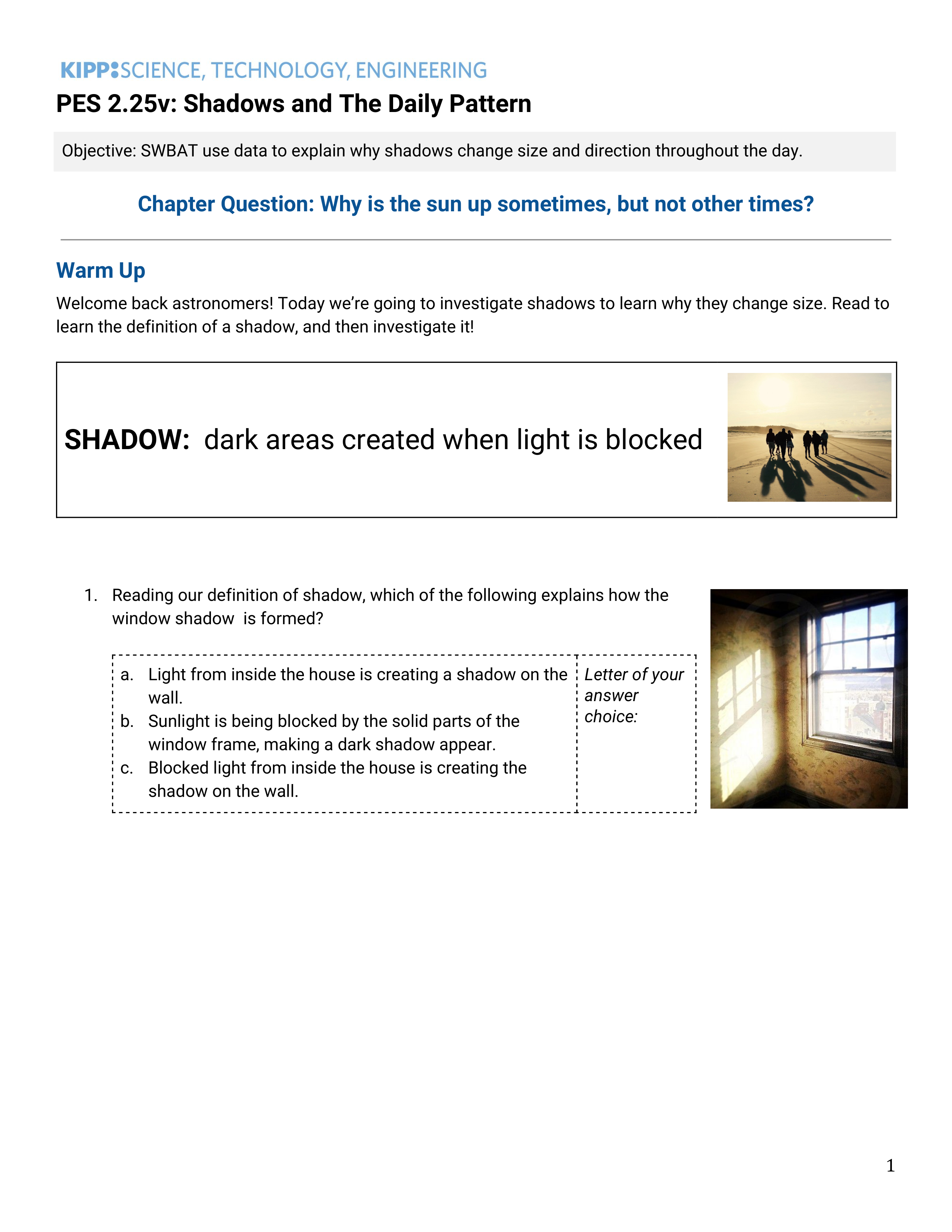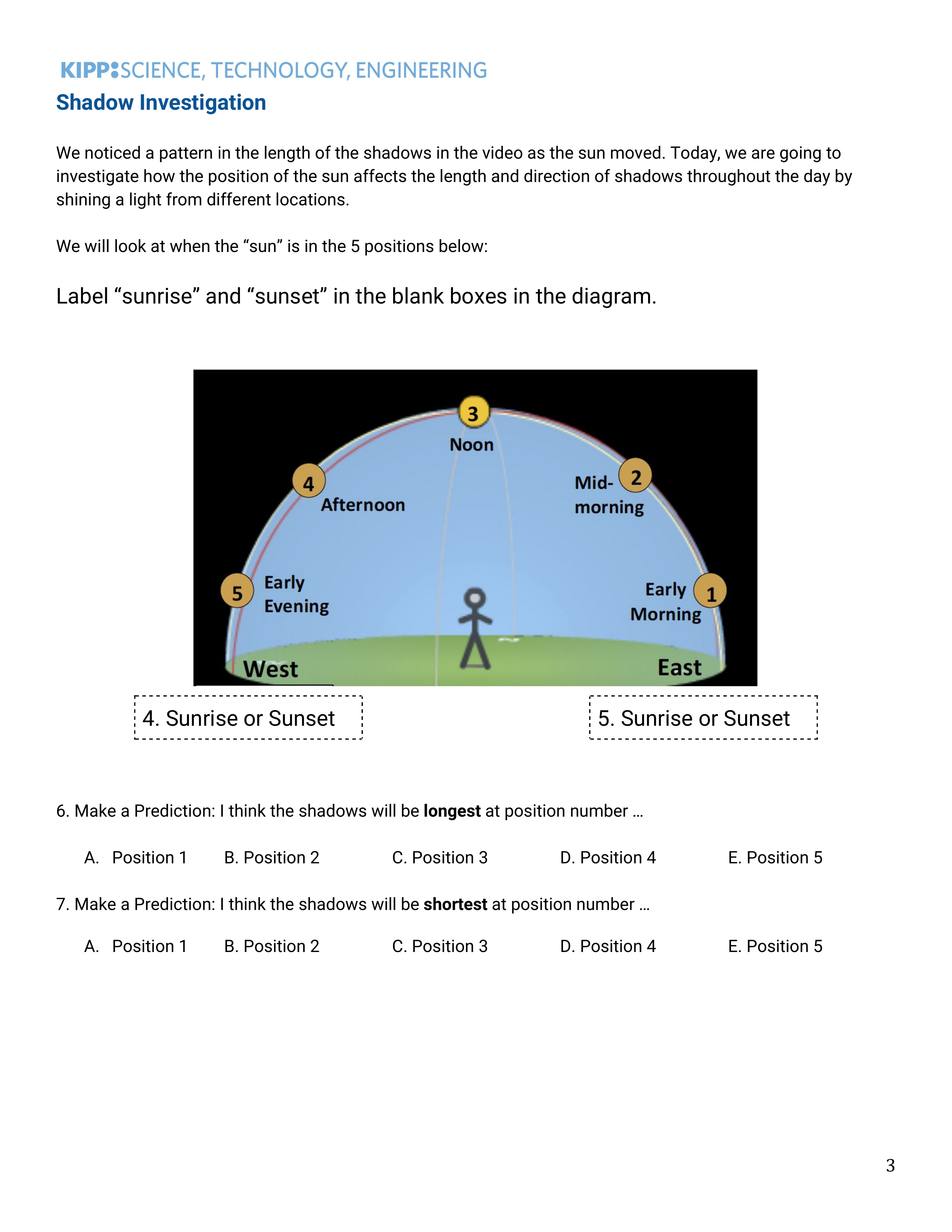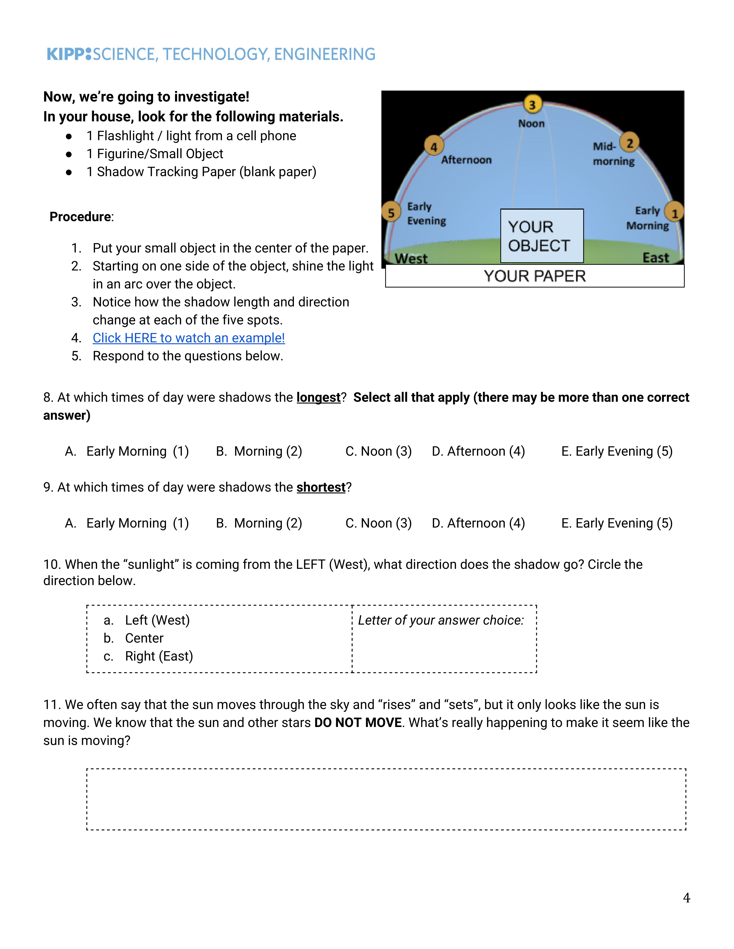 When the “sunlight” is coming from the LEFT (West), what direction does the shadow go? Circle the direction below.