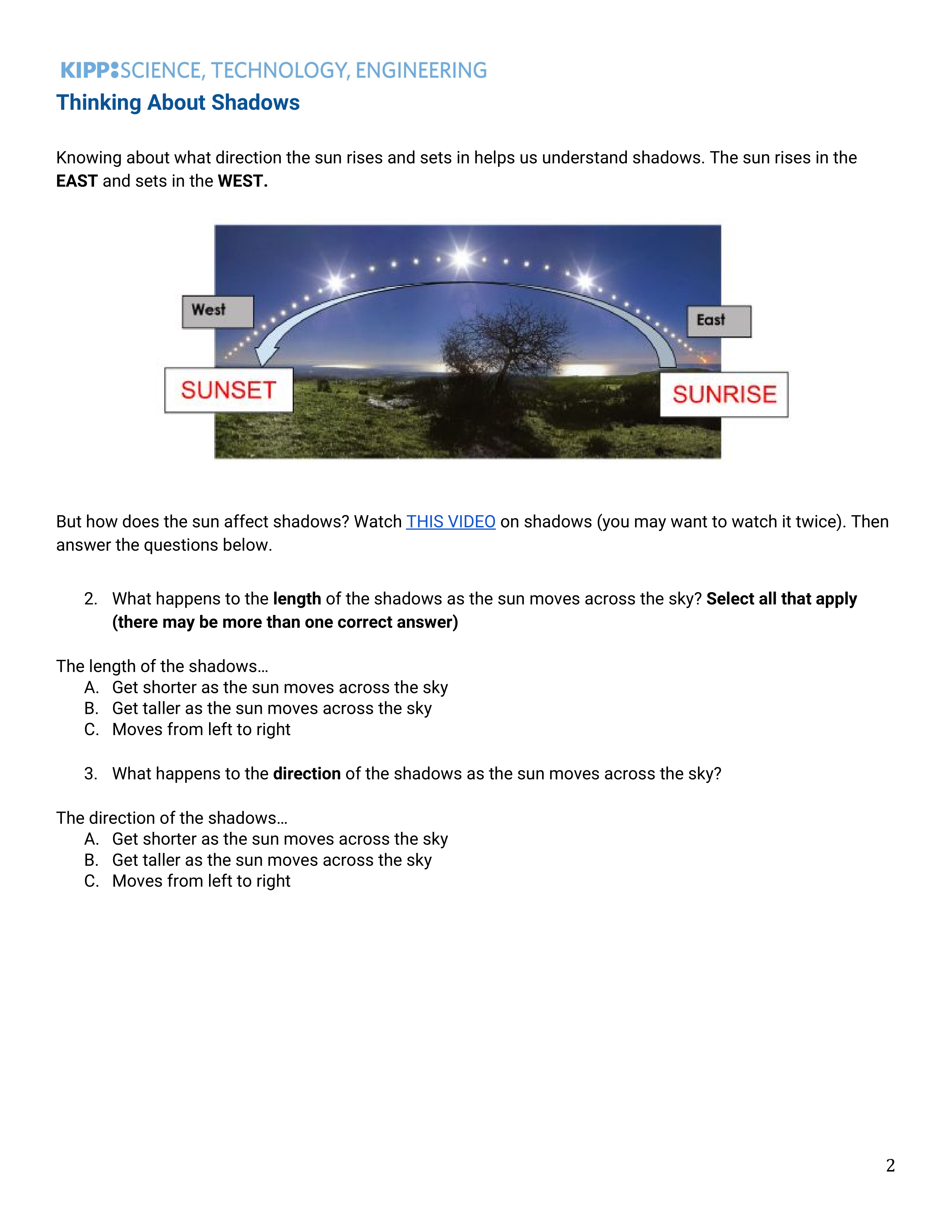 What happens to the length of the shadows as the sun moves across the sky? Select all that apply (there may be more than one correct answer) The length of the shadows…