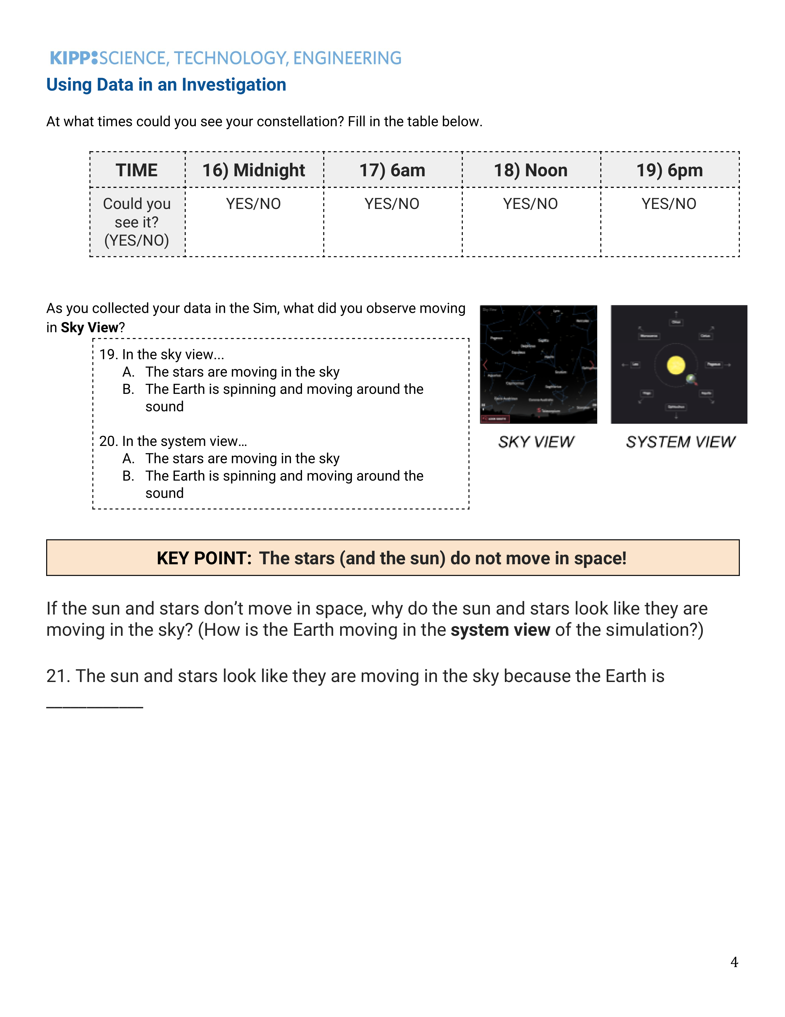 If the sun and stars don’t move in space, why do the sun and stars look like they are moving in the sky? You can use this to help your write your sentence:The sun and stars look like they are moving in the sky because the Earth is ____________